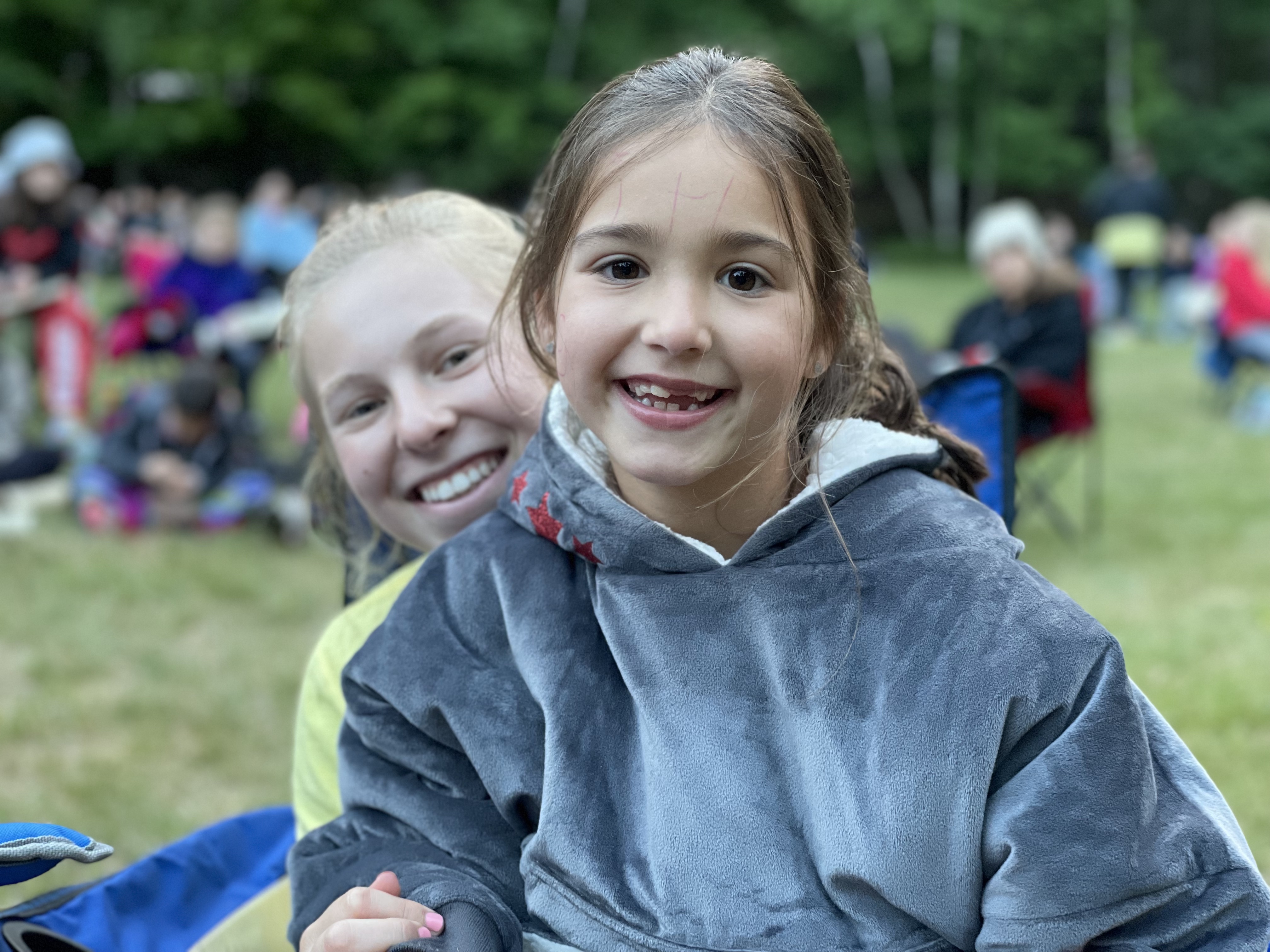 After an amazing spaghetti dinner (the traditional first night meal at CRC), we all headed to the North Field for the Opening Friendship Fire. Cabins were spread out around the field, we had a fire going in our new North Field fire pit, and the outdoor stage got its first use! We sang “Walking,” were entertained by Cliff doing “I Saw a Bear” or is it “I Saw a Bar” with the new staff, and C-C cheered loudly when Lily G won the Chippy Trivia Quiz Raffle. A definite highlight was when we sang “The Circle Game.” First of all, Lakeview sang so that the whole field could hear…it was one of their first moments to lead the camp by example…to demonstrate how we do things at CRC…and it was SO CHIPPEWA. And then, as the song got going, Mari W (first year camper) began dancing. She danced as if she had been at Chippewa for years- smiling, uninhibited and full of joy. Her dancing was contagious…counselors from Trailriders joined in as did her cabinmates. It was just perfect!