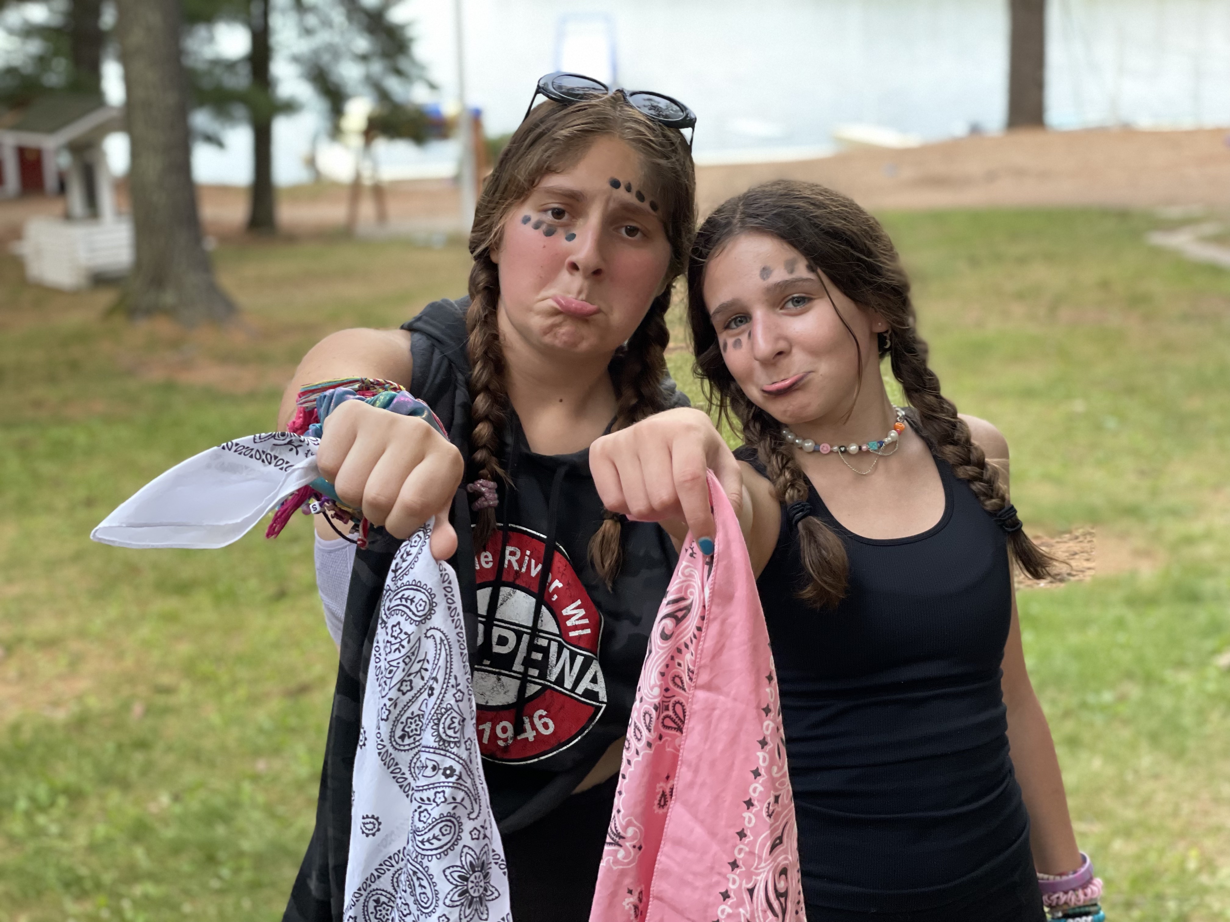 After fifth period, when Gophers went to get the mail, the campers found out that tonight was PIRATE NIGHT! Everybody was very excited to get decked in their assigned colors and begin strategizing for this program that so many love. The out of cabin staff, OOCS as we call them, dressed as pirates, and they looked good! When the night started, the pirates chased the cabins out of the North Field and they began looking for flags and following the clues of the treasure hunt to find the buried treasure. Counselors protected their campers from the pirates and they ran around camp joyfully. And I don’t use that word lightly- these campers were screaming, laughing and just enjoying! The sounds of tonight’s program were just so camp…it was a beautiful thing! Trailriders ended up finding the buried treasure (hidden near the tennis courts). To end the game, everyone headed to the Center Fire Circle to find out who won. And sure enough between the buried treasure and the flags they collected, the campers of TR were the big winners tonight! Following the Center Fire Circle, in keeping up with a long-standing tradition, the pirates then side dove into the lake as all of the campers chanted,“Pirates in the lake!”