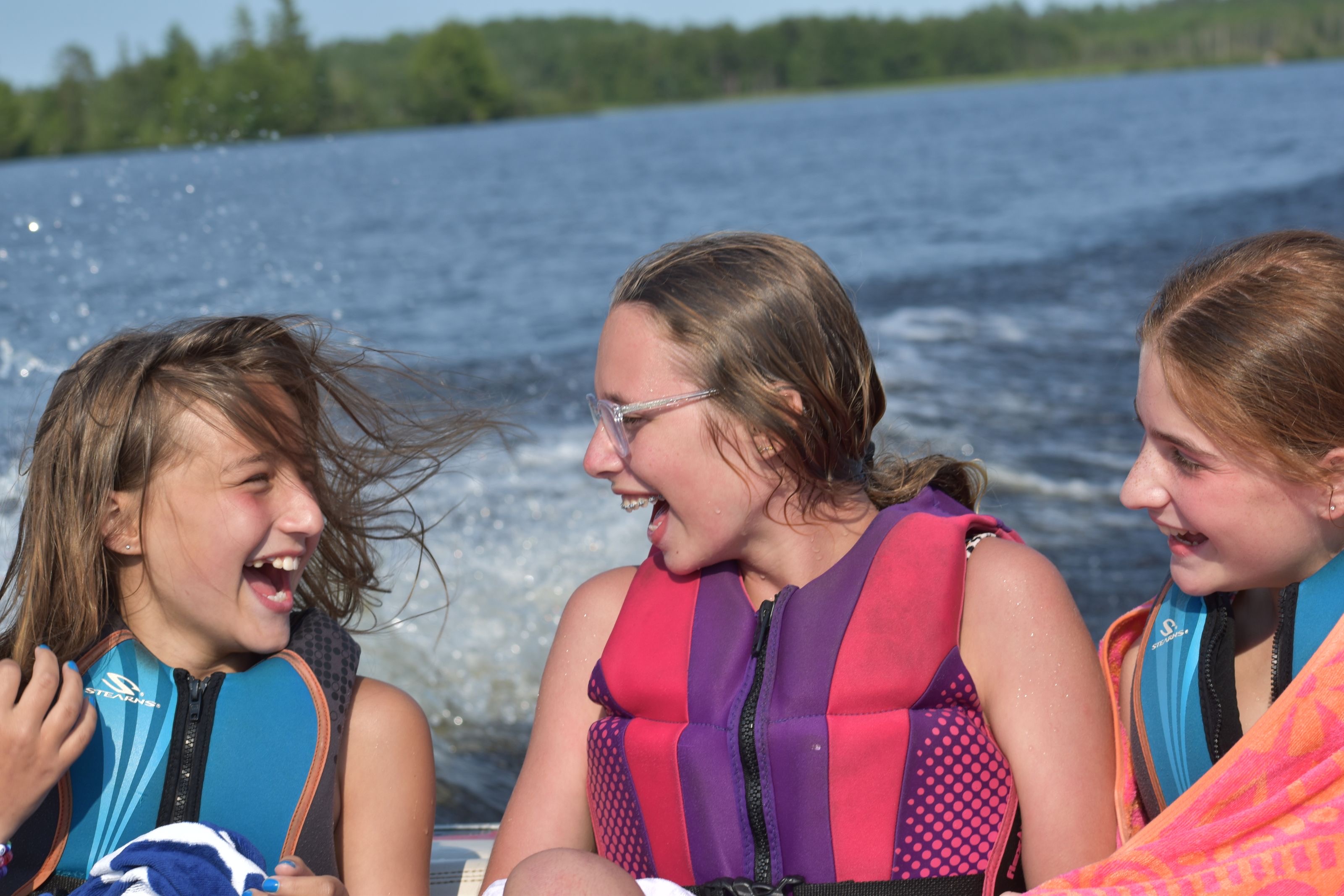 This afternoon, during fifth period, three Bowed Legs campers appeared in the office and invited me on the ski boat with them. I excitedly ran down to the docks with Haylie W, Sami D and Charlie S, and we got on a boat with Skylar Sachs as the driver and Hannah Dworsky the lifeguard. It was a very exciting half hour…to begin with, Charlie dropped a ski and got around the lake! Next, Sami got up and lifted for eight seconds…she is so close to passing the level (lifting for ten seconds). And finally, Haylie W got up and crossed the wakes on two skis! It was joyous…no joke!