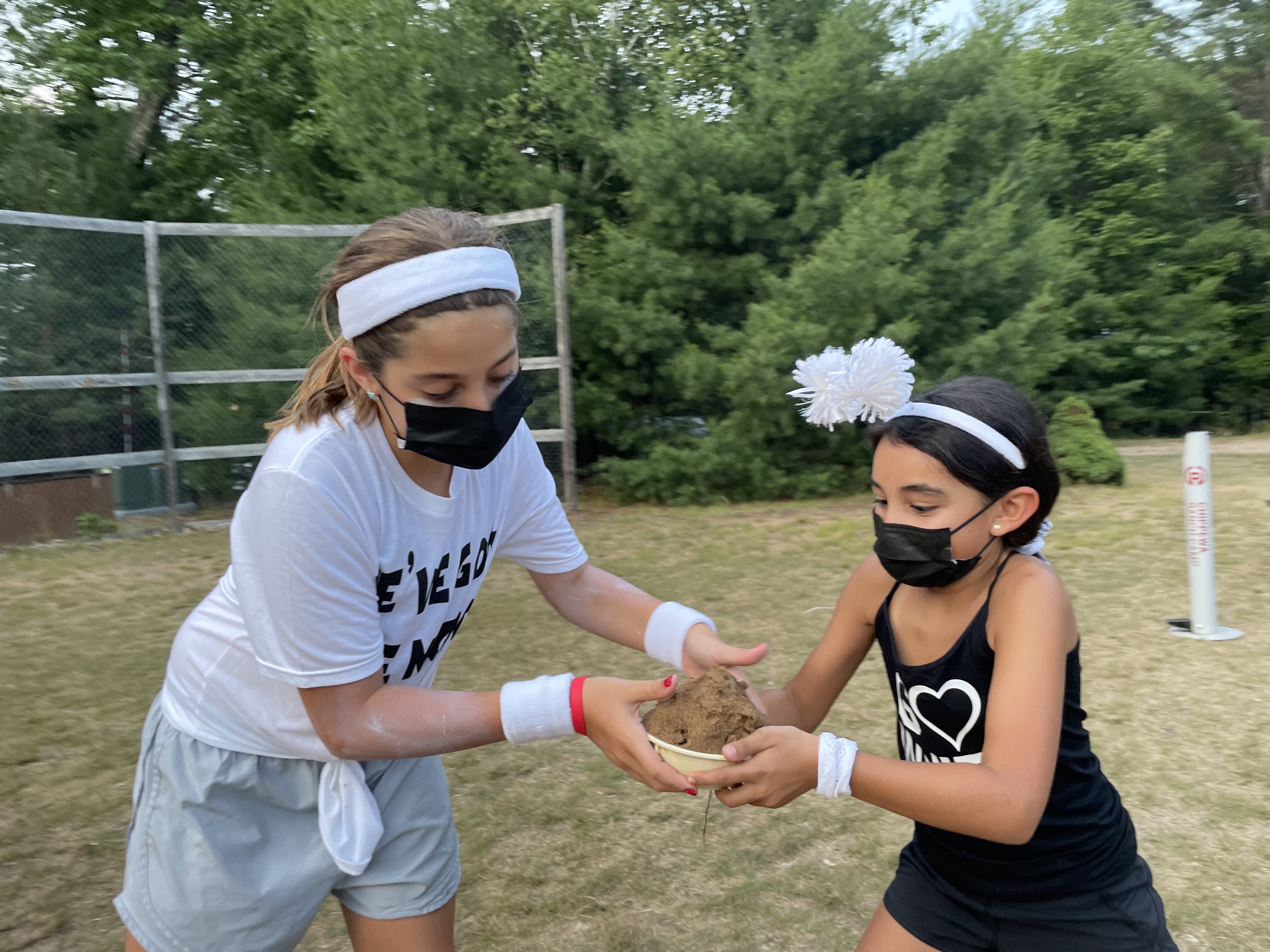 And then, after a delicious chicken dinner, we had our very first Tan & White game of the session- Sandstorm! Campers were decked in their red and white shirts, and singing their songs loudly at the Center Fire Circle. The energy was intense and the excitement was through the roof! Sandstorm is a unique Chippewa-created game where each team is trying to get a pile of sand from the south end of camp to the north. There are a number of different methods by which they do this and there are a couple of challenges along the way. By the time the Sachems from each team were running sand from their trash can to the weighted buckets, it was fairly dark and the entirety of both teams were surrounding them, and cheering in support. And then something happened that has never happened before- there was a slight gltich in the system. We had to call the game at that point, and the Whites were slightly ahead…so while it was a unique kind of victory, the White Team won Sandstorm 2021!