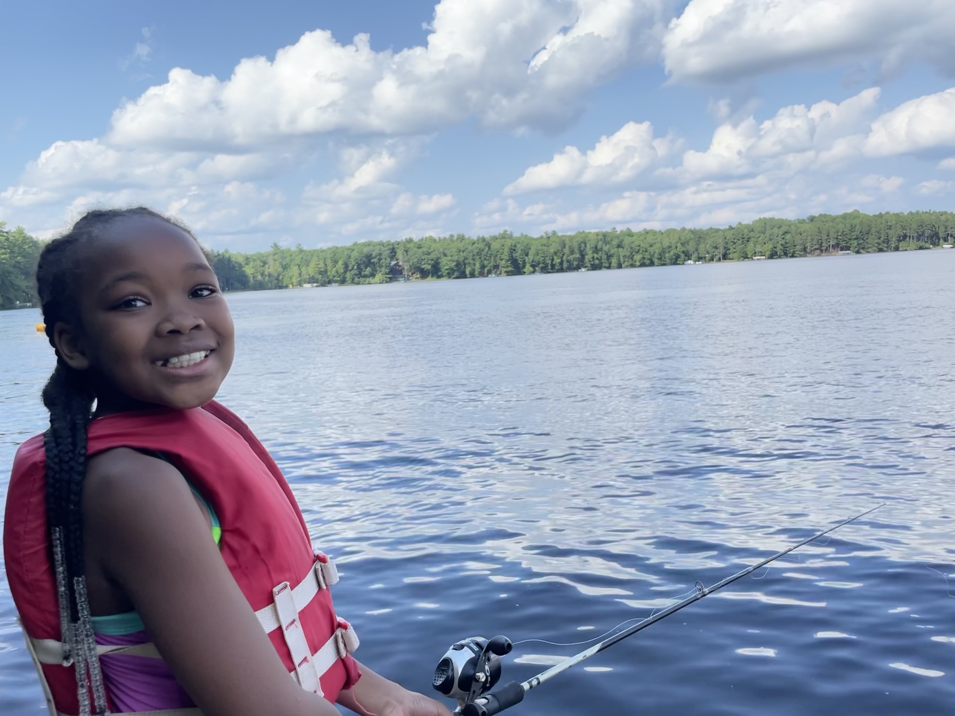 At waterskiing, Ava V, Ava S and Suzy R crossed the wakes on two skis, and Julia P dropped a ski! I had the great privilege of hanging out on the fishing docks during fourth period fishing. Annie S caught a fish while I was there, Sadie G told me all about her unique way of catching fish and I got to see Ivy F in action as an IA. While standing on the fishing dock, I also had the good fortune of seeing Camryn F and Lauren G singing gleefully on their SUP board as they headed back to the docks. Those two are clearly taking advantage of every moment they have left as campers and I love it!