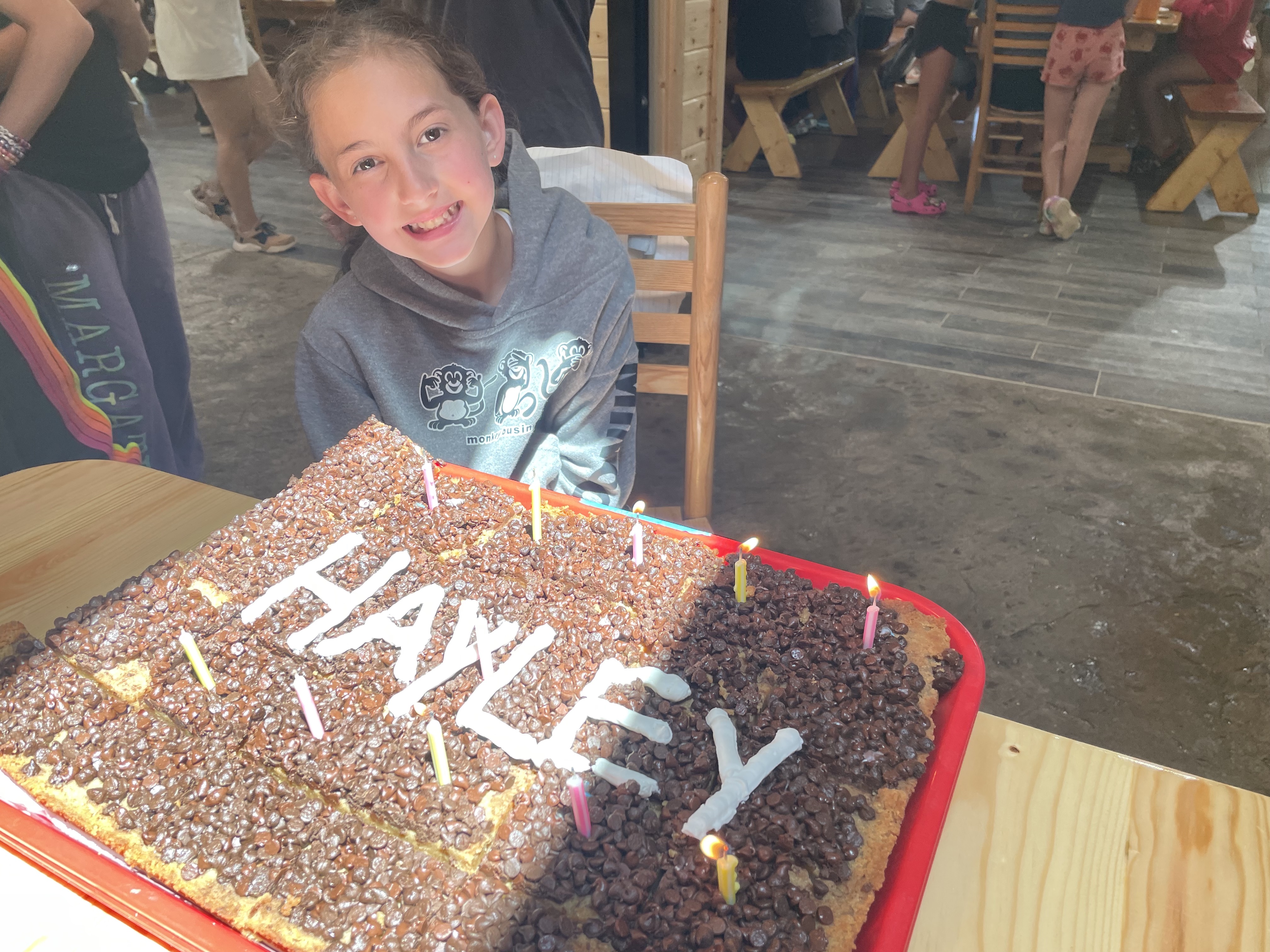 Speaking of achievements… as always, there were also lots of activity achievements around camp. At skiing, Annabelle K and Lexi K got up on 2 skis for 10 seconds, and Emma S got up and around the lake on the boom rope. Chandler S surpassed 200 golds in archery (which is more than the instructor, Luke!). Slime was made in arts & crafts and lots of campers threw mugs on the pottery wheel. I also saw several very intense games of Gaga going on throughout the day. There was action all around!
