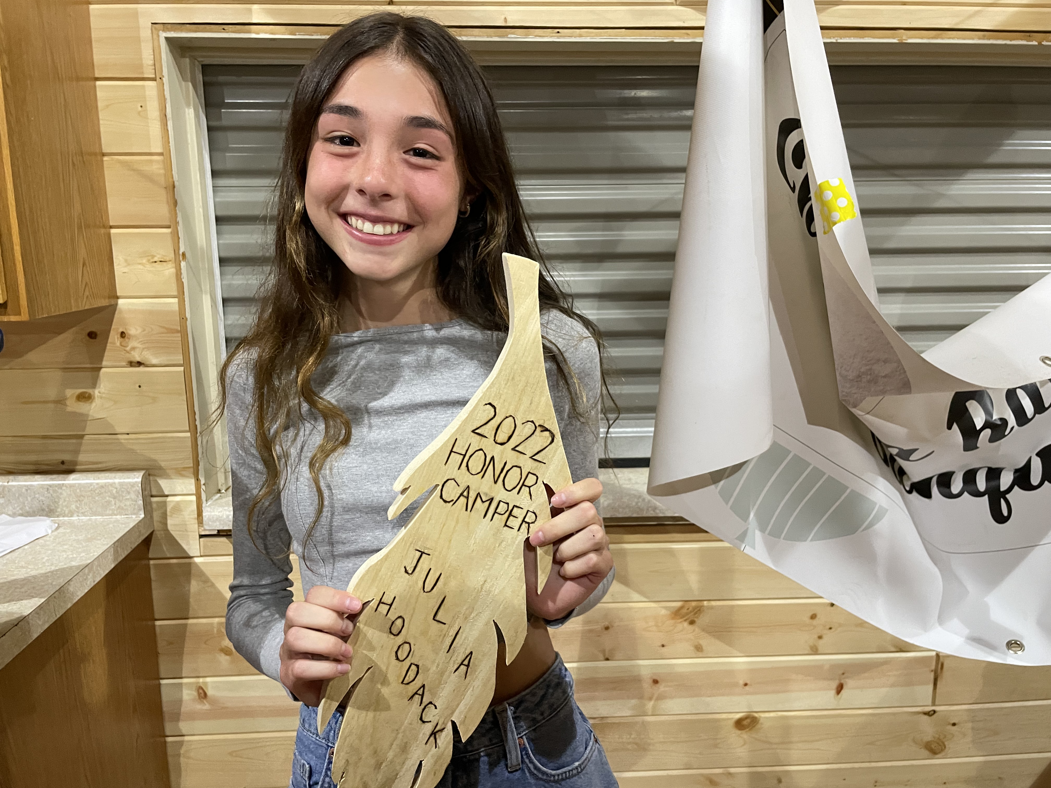The day ended with our Four-Week Banquet. Following a gourmet gnocchi dinner, 4-week campers received awards for being MVP, Most Improved or Most Determined in activities across camp. Campers cheered loudly for their friends and cabin mates who were deservingly recognized for their dedication and enthusiasm in activities. The final awards of the night were Ranch Queen and Honor Camper. Ranch Queen is awarded to a camper who has excelled in skill and leadership at Riding. This year’s recipient was Alexis R, who was recognized for her enthusiasm, dedication and improvement at the stables this summer. The evening concluded with Chippewa’s biggest honor, Honor Camper. A huge congratulations to Julia H, whose compassion, empathy and love of camp is apparent is all she does. She is a leader, a role model and an example of the qualities we value here. She is deserving of this honor, and we are proud to recognize her in this capacity. Congrats, Julia, and thank you for all that you add to our CRC community!