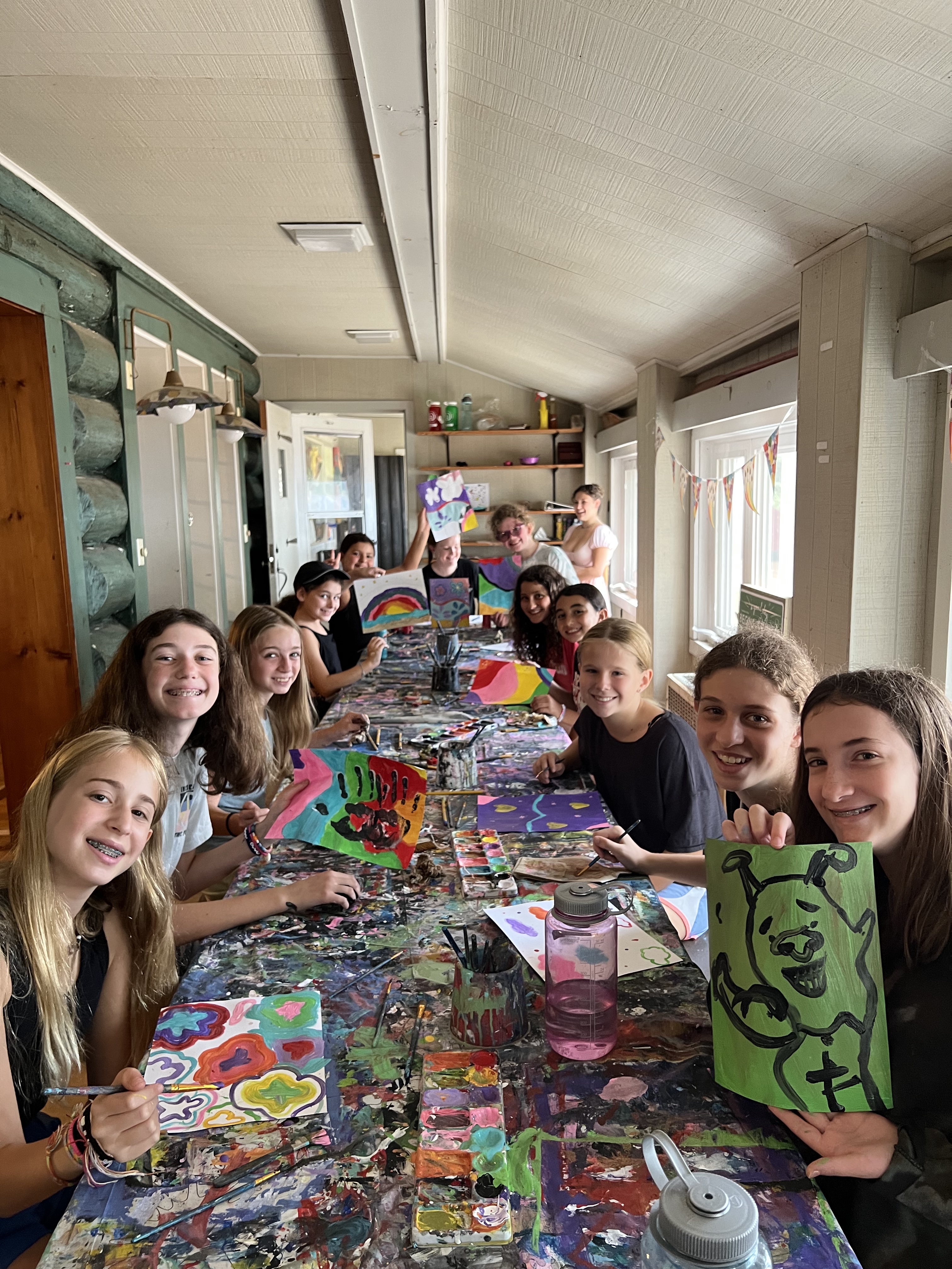 In painting today, they began painting an awesome floral landscape…I am always amazed at how talented our campers are when it comes to the arts! And at skiing, the achievements were flowing! Fiona B, during her first time skiing as a Chippy, got up on two for ten seconds, went around the lake, crossed the wakes on two, lifted for ten seconds, dropped for ten seconds, continued around the lake AND crossed the wakes on one ski! Additionally, Elle H got up for ten seconds, Ivy S dropped a ski, Skye N and Raquel W lifted, Sadie G and Jayden G got up and around the lake on one ski, and Hailey C crossed the wakes on one ski!
