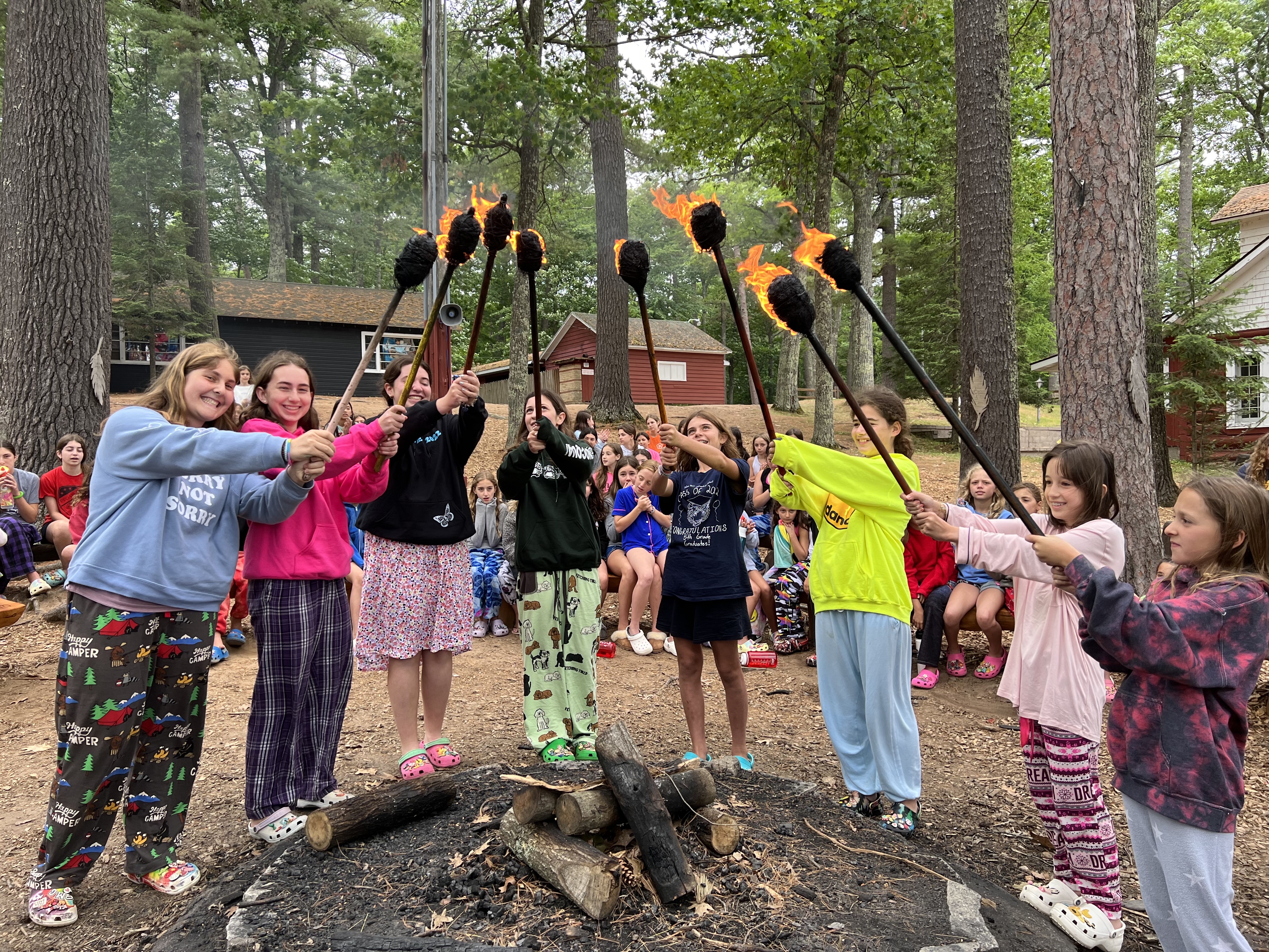After breakfast, the entire camp gathered around the Center Fire Circle for a very important ceremony- the announcing of the United Nations Day captains. Each summer, on the final Monday of first session, we hold UN Day. UN Day is a day full of competition and spirit in which the camp is broken up into four countries. There are four Colt Village Captains and four Wrangler Village Captains. These campers have been selected by their counselors as campers who demonstrate leadership potential, kindness and camp spirit. It is a huge honor and responsibility to be named a UN Day Captain. The 2022 UN Captains are Julia N, Samantha K, Mia B, Sadie G, Mila S, Lilah K, Emma A and Jessie H. These are eight very well-deserving campers of such an honor and we are excited for them to lead their teams on Monday!