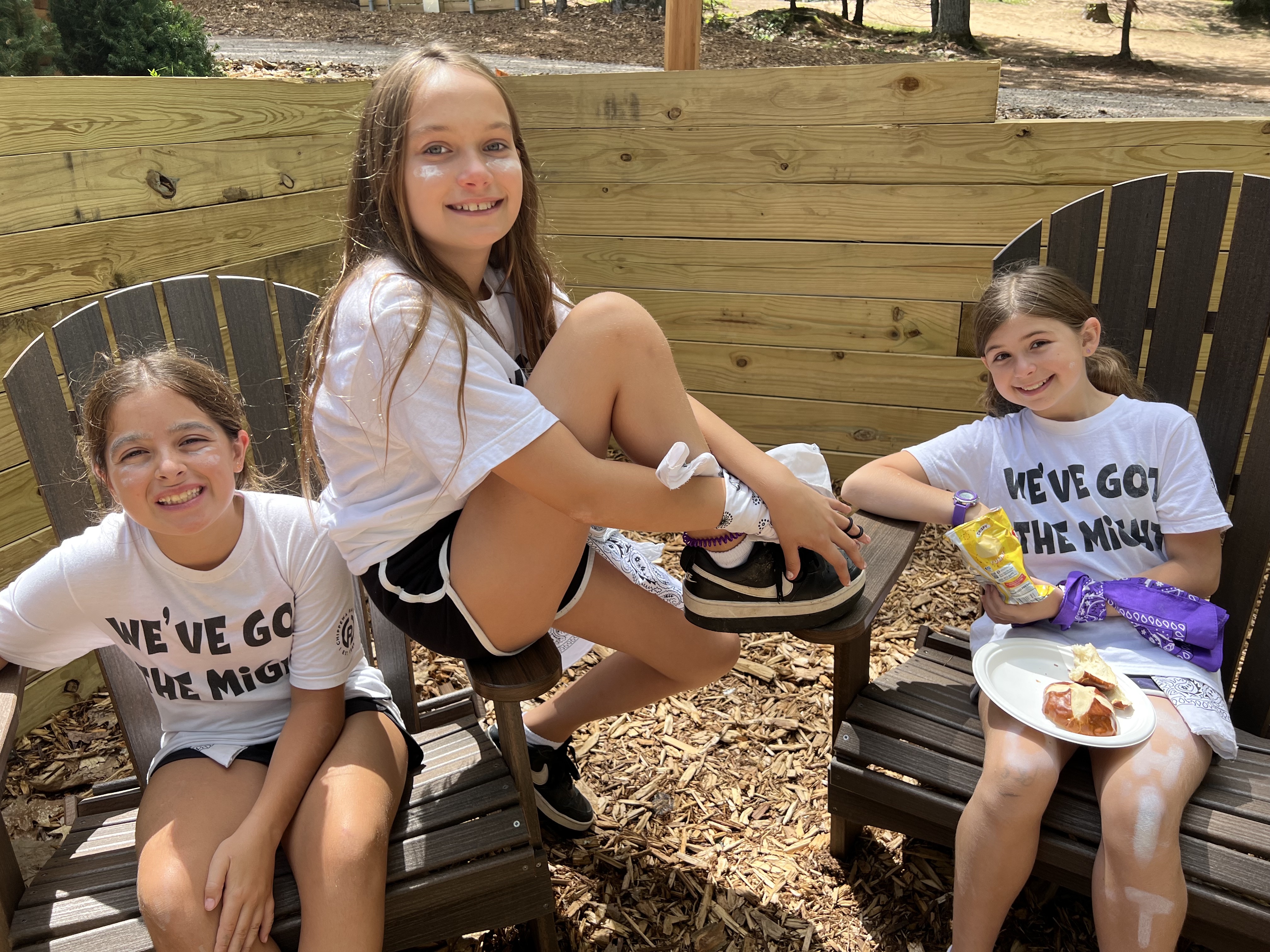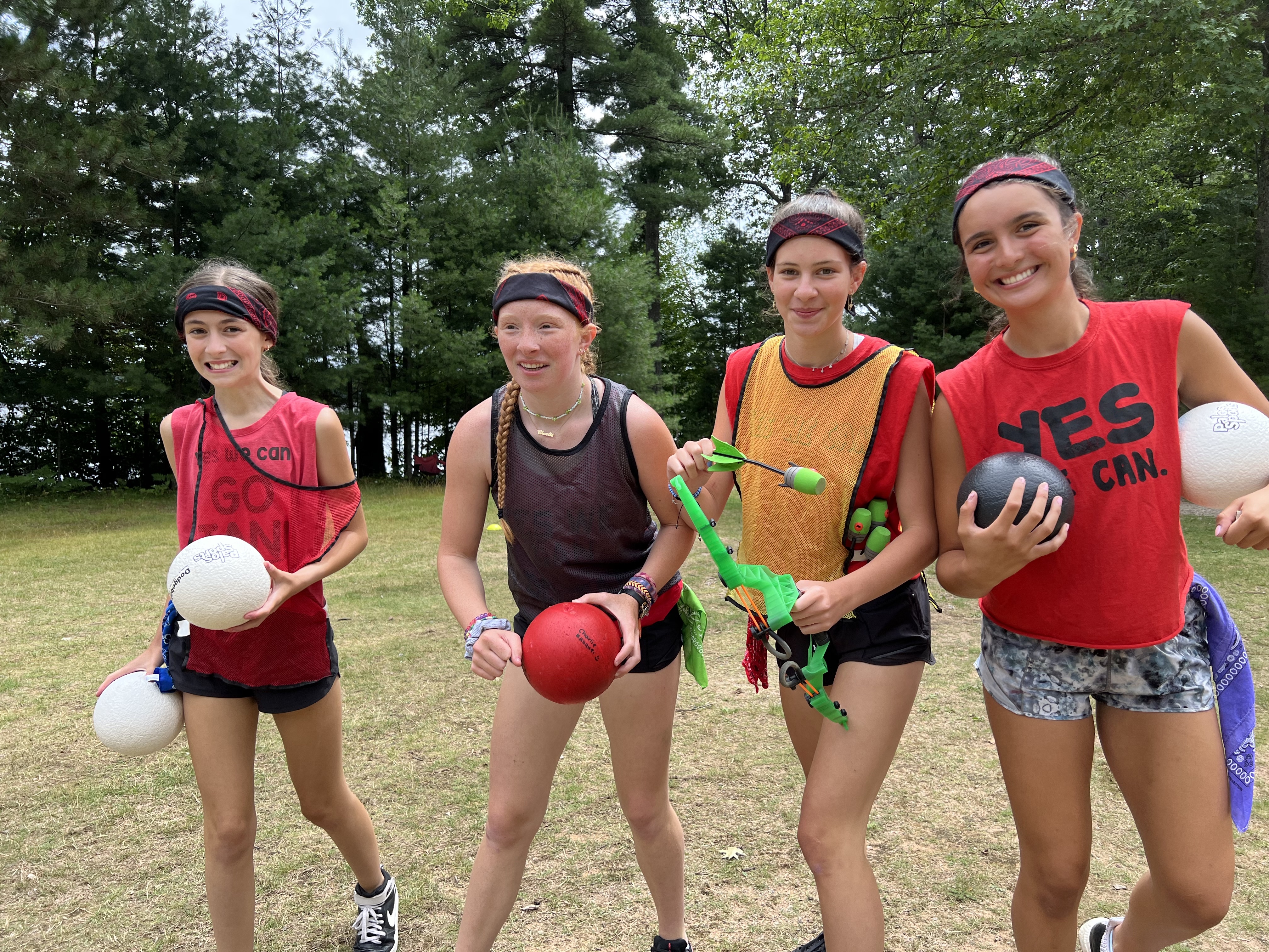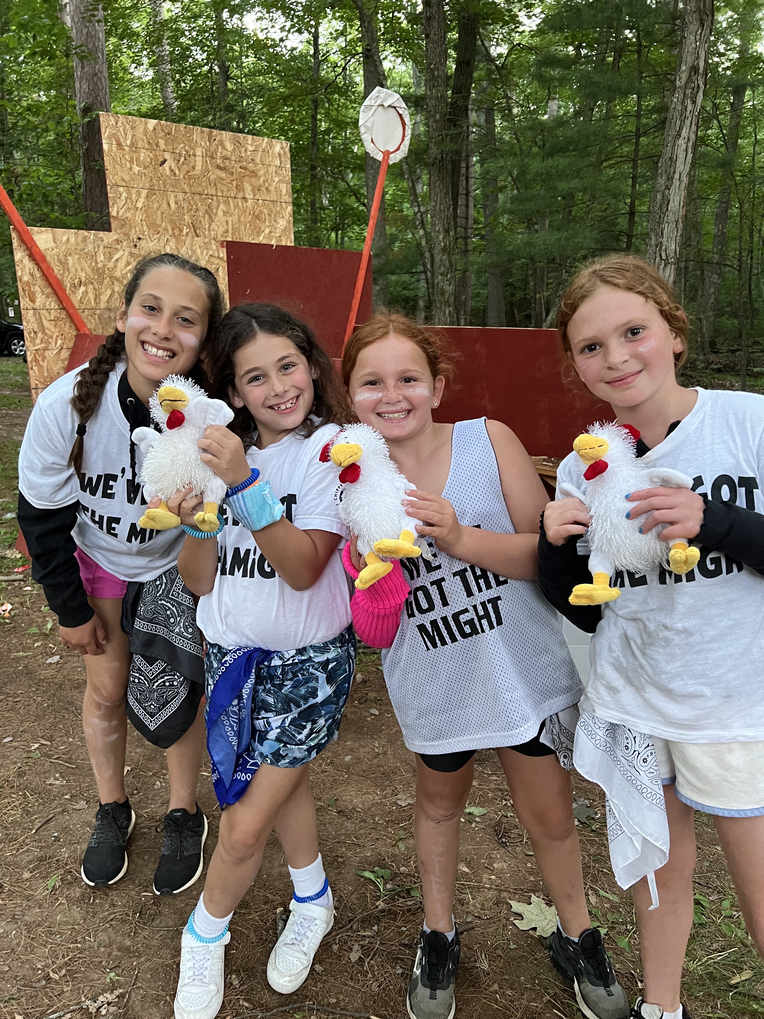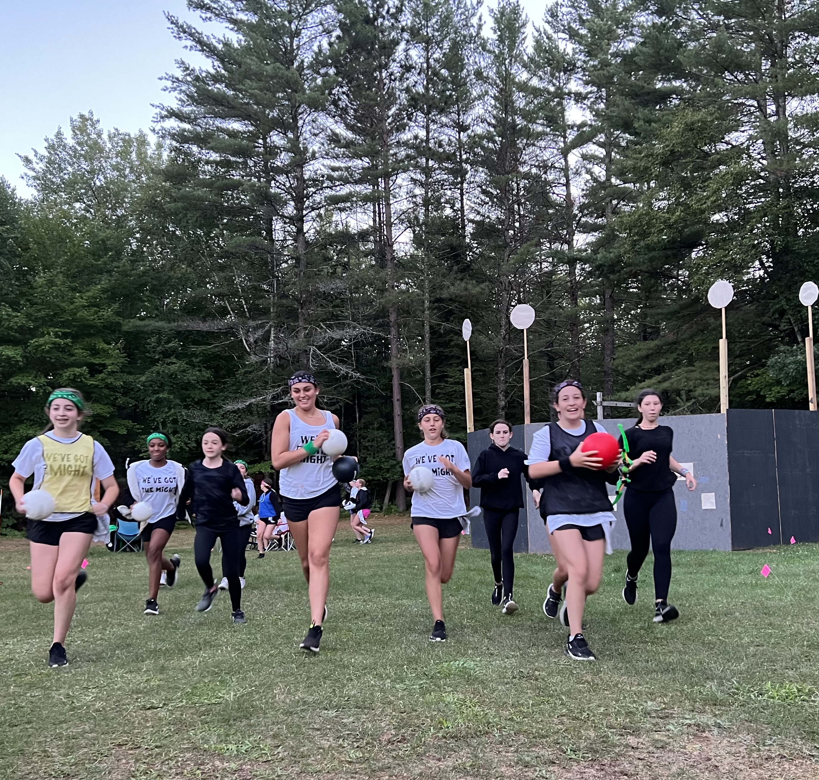 To begin the game, each house has some things they need to do in order to get their industry moving. The Fish Hatchery needed fish flakes to feed their fish, the Lumber Houses scoured the woods for pine cones, and the Poulty House began making nests for their chicks. Meanwhile, in Chip-indel, staff prepared their storefronts. Luke’s store, “Bailey’s Bows,” was selling bows. The Grossery Store, run by Lisa & Lizzy, provided campers with a place to purchase snacks and candy…yes, they were very busy today! Sophie Friedland was running the Pharmacy, where she sold different ingredients to help campers make antidotes, and she also bought fully completed antidotes. Edgar, Dan & Carlos were responsible for keeping the Chop Shop in order…they purchased all sorts of lumber from those in the lumber houses. And Josh was super busy as the Butcher- he was buying chickens, selling chicken eggs and helping campers source fish eggs. While all of this was happening, turns were alternating between Tans & Whites. During a team’s turn, they can send an attack and/or send an army to defend a house. Each of these moves can only happen if the castle has enough energy stones to send an army out. And energy stones are obtained through a game similar to steal the bacon or capture the flag. So yeah, it’s kind of confusing. But when you are in it, it all comes clear…you get it as you go!