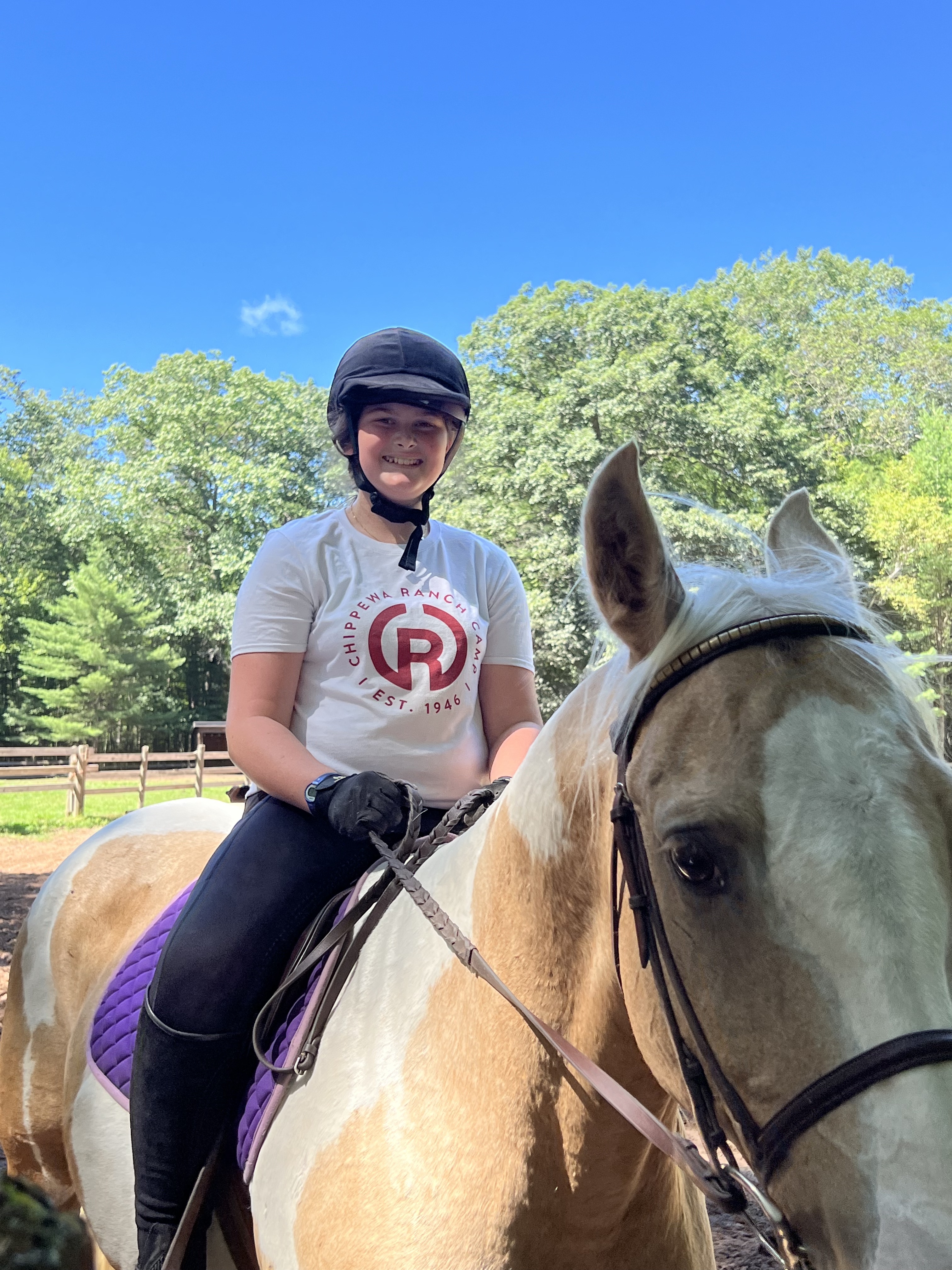 This afternoon, we had a very special event- Miss Rodeo. Miss Rodeo is the annual riding show in which our most advanced riders show off their skills. Jacklin R, Makenzie M, Sophia G and Hazel J impressed us all with their insane talent on horseback. I was truly amazed at their courage to ride while 300-plus Chippies watched in admiration. Horseback riding has been around at Chippewa since 1946, and although not every camper rides horses, it is such a cool part of our overall camp program. I love that once a summer, we all trek out to the stables to honor those who have dedicated so much time and effort to horseback riding. The entire show was incredible and the four campers who participated should be very proud of her work and performance!