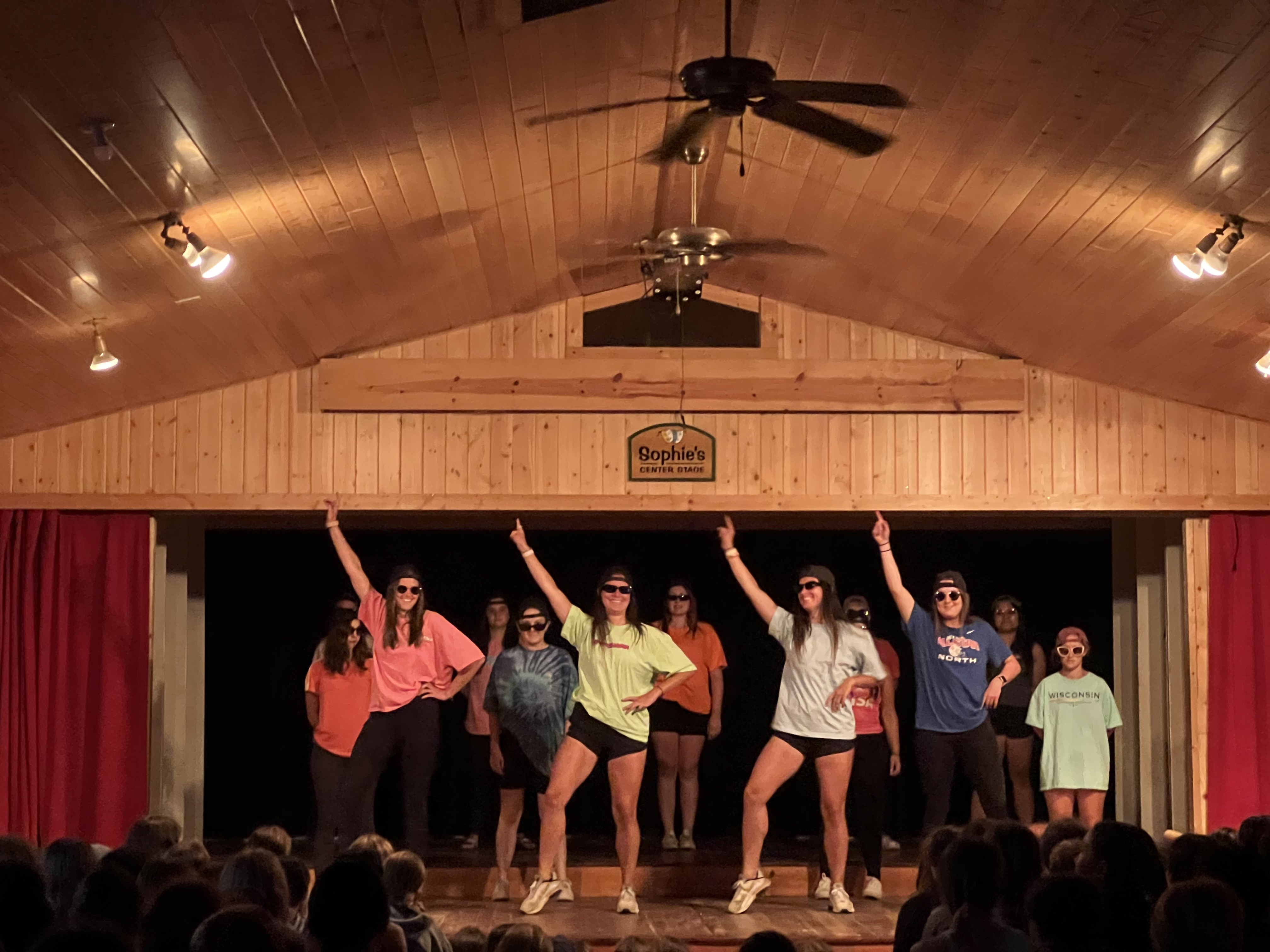 Following Miss Rodeo, in addition to one more activity period, Tans and Whites met to solidify their plans for Pony Express…the final Tan & White game (which will be tomorrow). Lasagna dinner and canteen created a great deal of excitement prior to everybody getting ready for this evening’s Staff Show. There were lots and lots of highlights from tonight and I am going to try a new format to share those with you…a list…I know, very creative :).