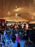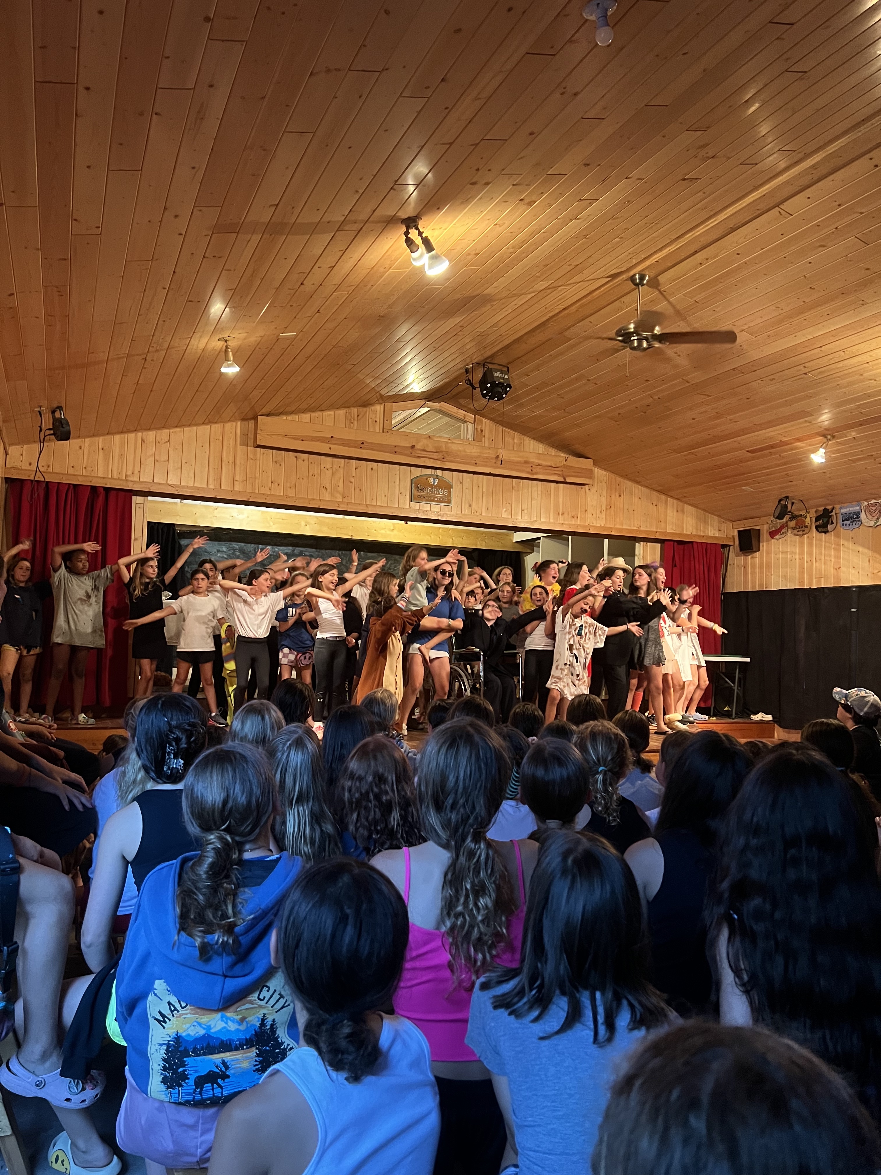 Fueled and ready for the evening activity, the campers made their way to the theatre for a performance of Annie and Timberlane social! Sadie G shone on stage with her beautiful voice as the star, Annie. Additionally, Julia N was Miss Hannigan, Scout K was Daddy Warbucks and Amari S was an incredible Sandy. The entire cast looked like they were having a blast and the audience was very into the production! The directors, Sydney Feldman, Lauren Hill and Lily Z, did a fantastic job helping these campers shine on stage tonight! There was even a stage crew led by Ilana Solomon! Everybody involved did a fantastic job!