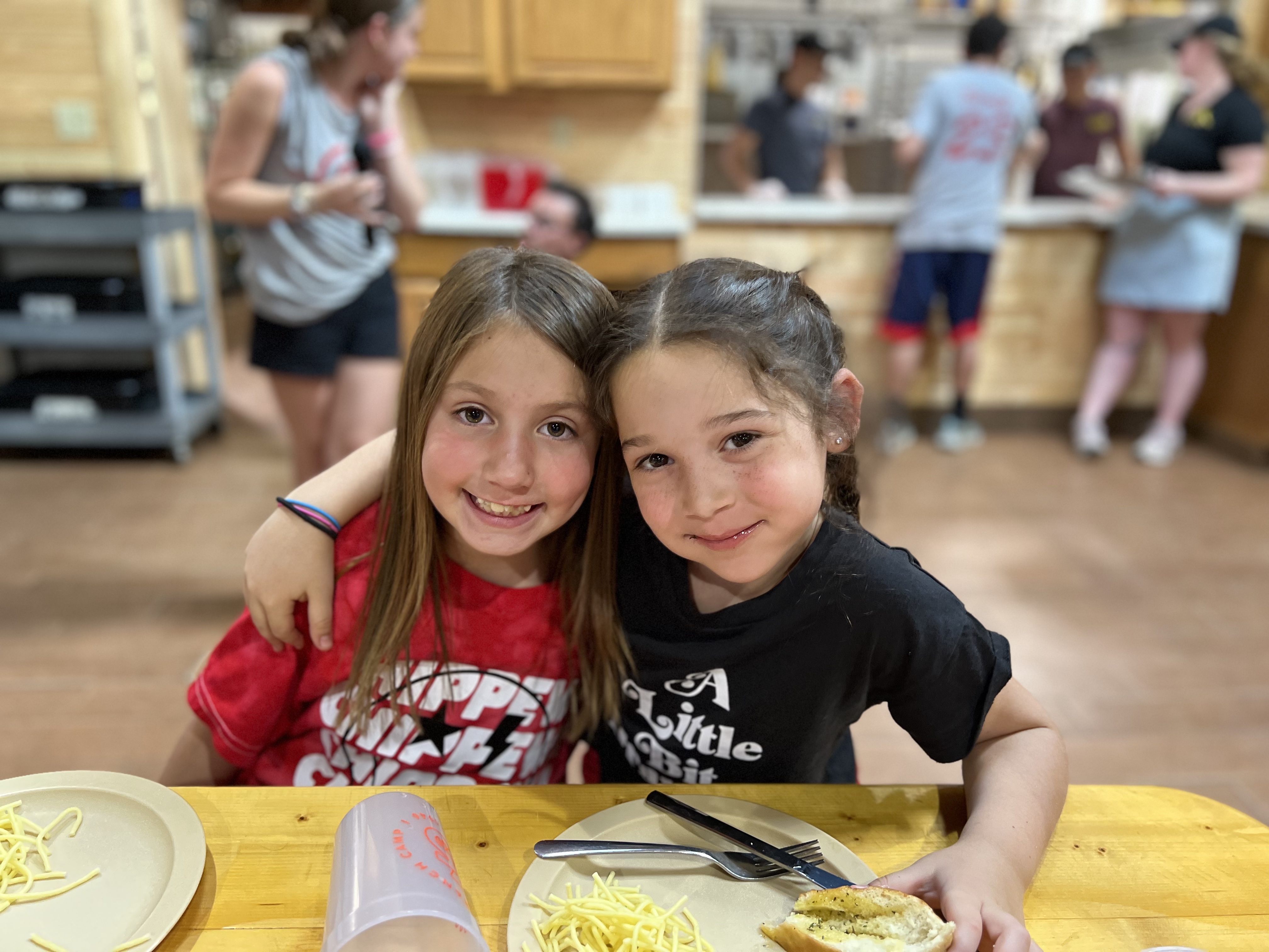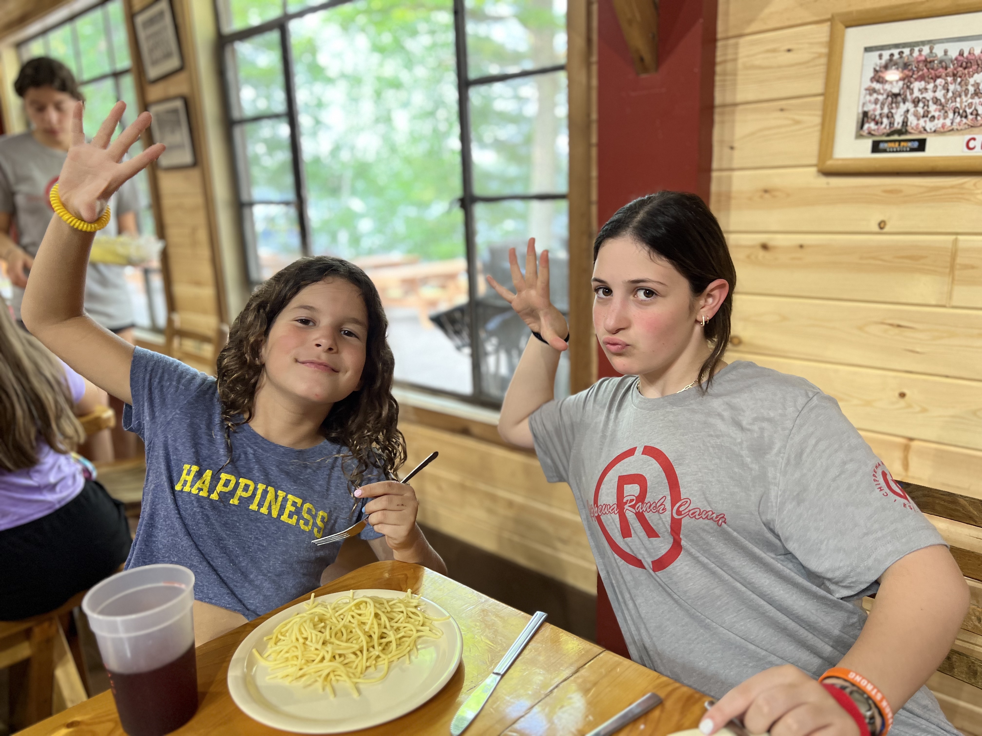 After some tours around camp, unpacking and general settling in, we had a delicious traditional first night dinner…spaghetti and meatballs! Cabins enjoyed their first meal together- lots of chatter and obviously cheering led by Lakeview.