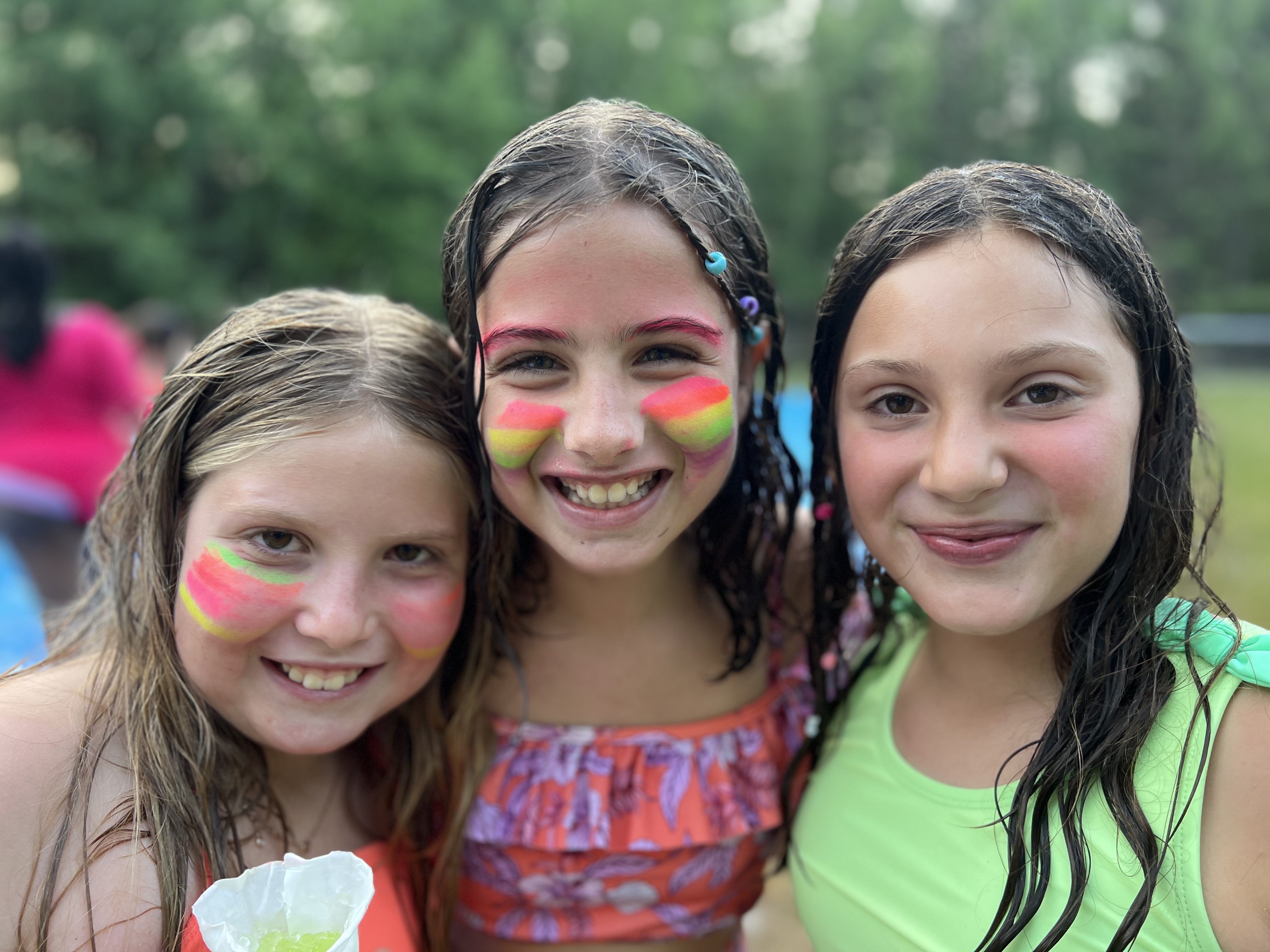 After our Taco Tuesday dinner, we all got ready for our Narty Farty (neon foam party). Campers and counselors got decked in neon, put on bathing suits and headed to the North Field. The playlist tonight was outrageously fun and had us all dancing the night away. The Narty Farty also included the foam machine spewing out wearable foam, a huge slip n slide and sno-cones to stay refreshed. There were water fights, piggy-back rides and plenty of other care-free fun. Foam party always lends itself to some good bonding time…friends of all ages frolicked around the field forming memories that will last forever…or at least for a very, very long time. The excitement ended relatively early, which gave campers plenty of time to shower, do some cabin activities and get to bed early…at least camp early!