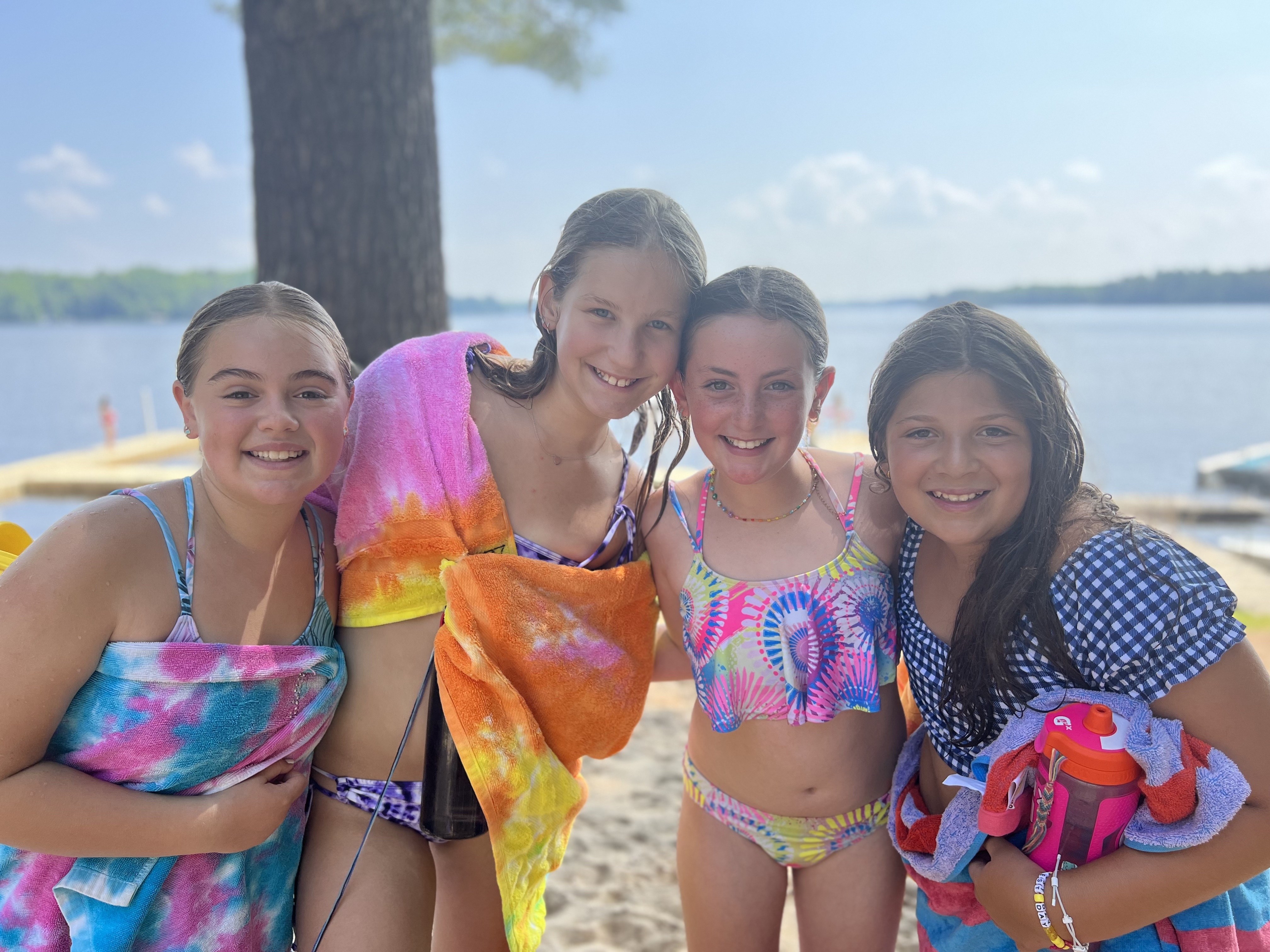 I then made my way to the waterfront and was lucky enough to witness Riley S catch a fish! While I didn’t get to see it with my own eyes, I am told that Chloe Z actually caught the very first fish of the summer…it was quite an exciting moment. Making my way across the waterfront, I got to see campers demonstrating how to rig a sailboat, others jumping off the water trampoline with glee and some screaming with joy as they slid down the water slide. I then journey’d over to skiing just in time to hop on the new Ski Nautique. Juju D, JJ S, Haylie W and Samantha D were getting on the boat to head out for their first ski run of the summer, so I decided to join them. It was amazing to watch these four campers of varying skill levels remember their ski techniques and enjoy cooling off in Dam Lake.