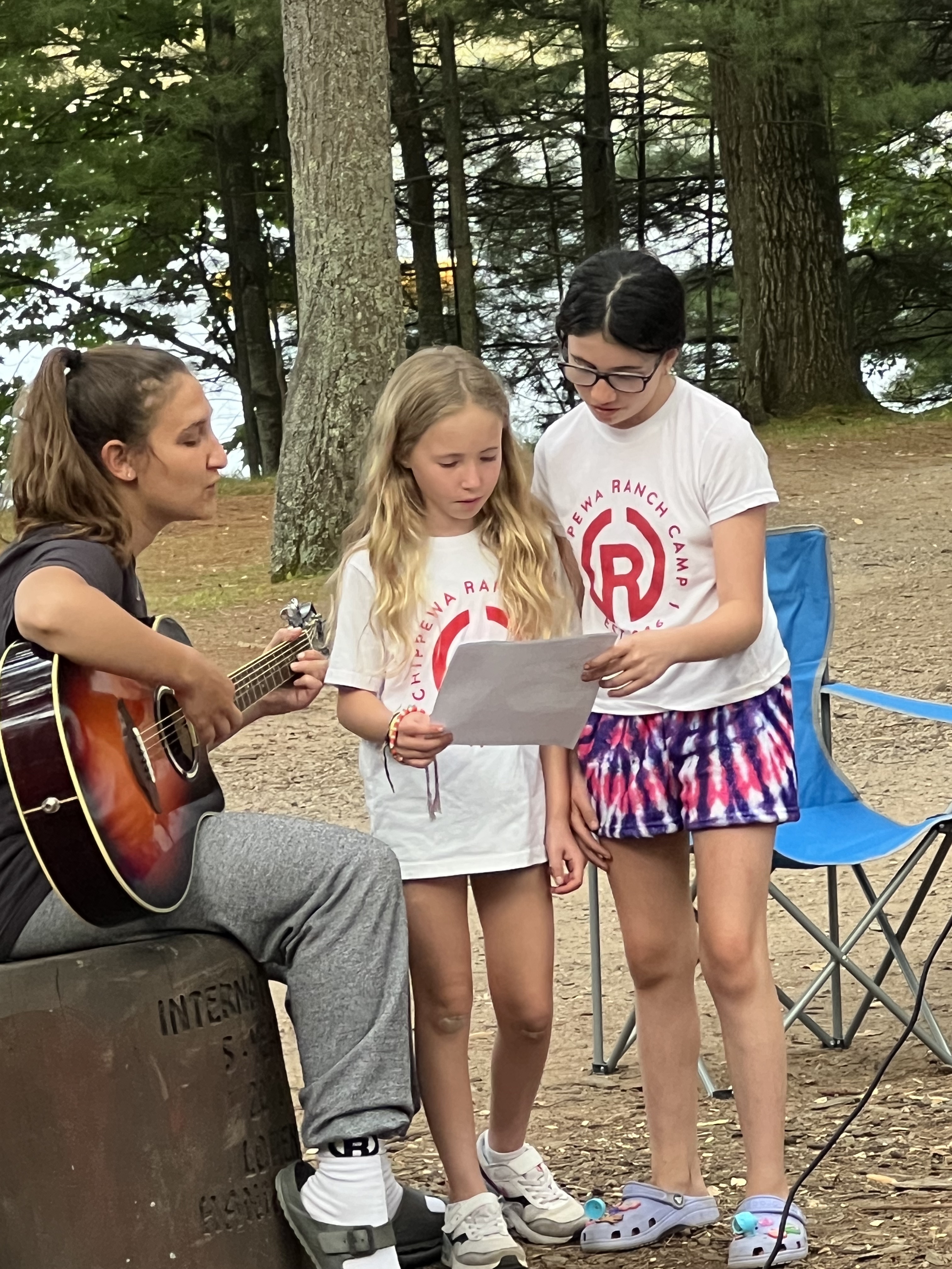 As for the highlight of the day, this evening’s campfire was fantastic. The theme was Advice From a Tree and Cayla B did an incredible job leading the program. We began at the flagpole where Millie F, Georgia S and Emmie D lowered the flag as Julia N & Sadie Gl sang the Star Spangled Banner. And Yael S held the flag box where the folded flag was placed at the end of the ceremony. Riley F, Braelyn S, Logan R, Ava Z, Naomi M, Millie F, Neve F, Skye N, Maddie S, Leah R, Renata A, Elise M, Vivien L and Evah R all got up to read poems, stories and quotes relating to tonight’s theme. And Blair S and Sophie Friedland read meaningful sermonettes that they wrote. Sophie’s sermonette really hit home for me and I hope the campers and staff sitting around the fire circle tonight really took her words to heart. She talked about the trees and sky that she has looked up at each and every Friday night for the past thirteen summers. She explained all of the amazing things that those trees have witnessed at CRC in their lifetime…the Tan & White cheering, the happy times campers have had at camp, the challenges they have overcome and so much more…through it all, over the course of Chippewa’s history, those same trees have been looking over the CRC community. She then described what she believes the advice those trees would give us…I believe her words included something to the effect of Chippewa has taken care of Chippies like us for generations and it is our responsibility take care of Chippewa for generations to come.