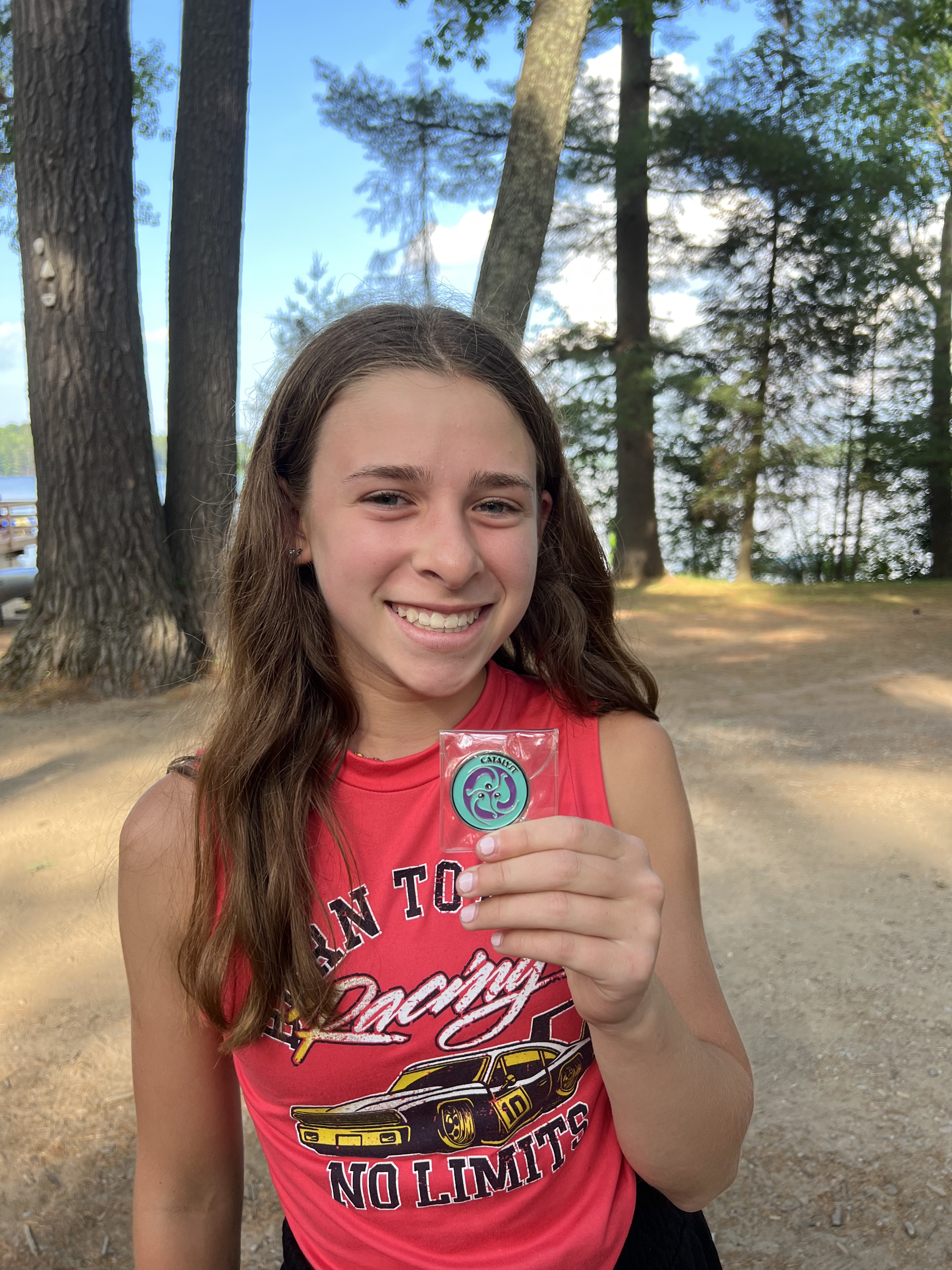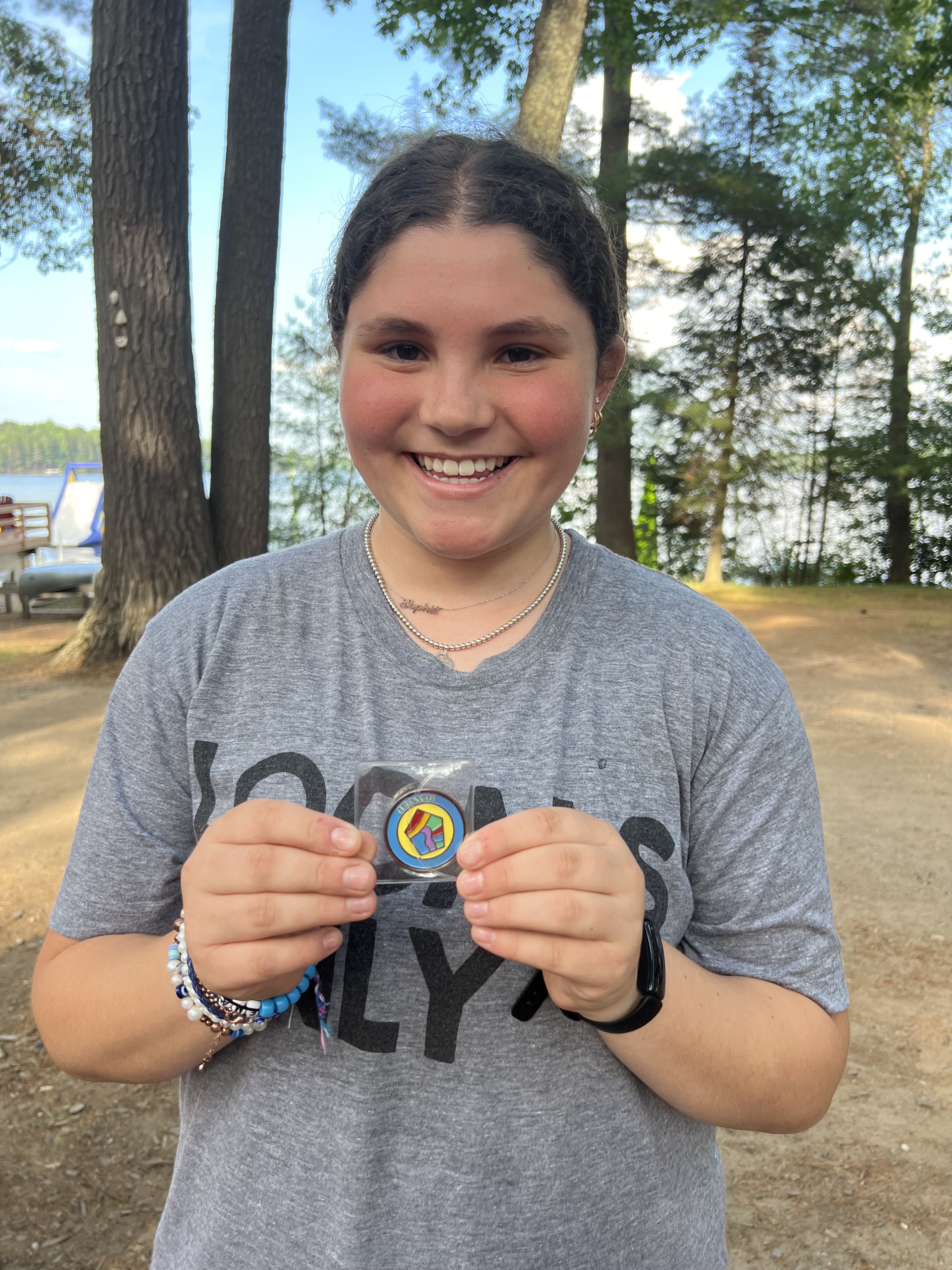 In addition to all of this, we had a coin ceremony and activities today. In skiing, Harlow R got up on two skis for ten seconds, Riley S and Rosie H passed lifting, Leni B, Quinn M, Jillian C and Stella G passed dropping for ten seconds, Laney K passed getting up on one for ten seconds and getting around, Alexa R passed getting up and around on one, and Chloe G passed crossing the wakes on one. Woah- that’s a lot of passed levels! At the Center Fire Circle, Emma S was awarded the Catalyst Coin, Sophie B was awarded the Strength Coin, Sophie S was awarded the Work Ethic Coin and Luke B was awarded the Selflessness Coin. I loved seeing these campers and counselors get the acknowledgement they deserve!