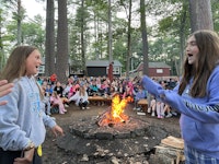 Following dinner, we had our Opening Campfire and fun was had! A highlight was the rainbow that appeared over the lake about five minutes in. We took a nice nature break to admire the beauty. Once we got going, things got crazy…in a good way! The CR-Singers led us in “You’ve Got a Friend,” and Leah Berns accompanied by Noa B and Chloe A sang “Fearless.” Additionally, Leah Berns led us in “Making it Rain” in an effort to minimize the rain over CRC this session. We had our Chippy Trivia Raffle, which is always exciting. Olivia W pulled the winner out of the bag but only after sharing with us some Disney facts…yes she is a Disney enthusiast! Maddie B’s name was selected, and for the second session in a row, Trailriders has won a trip to Cathy’s for their participation in the Chippy Trivia Quiz during the off-season.