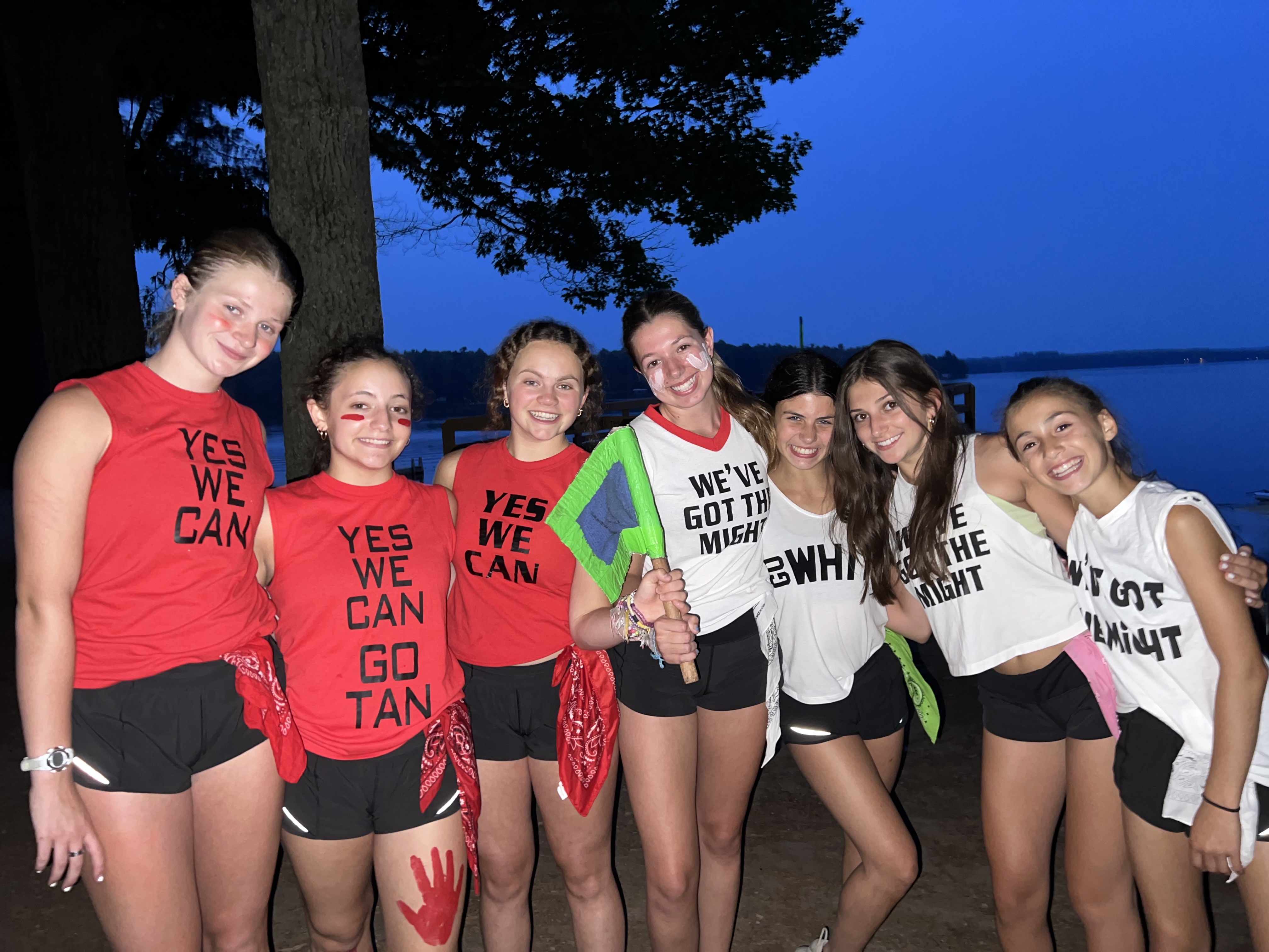 Once the birthday madness was over, we had a lovely Songfest practice and a delicious pizza dinner. And then the main event…Tan & White All Camp Capture the Flag. This is one of the most intense and fun games of the summer. Both campers and counselors have the opportunity to protect their flag and/or try to capture the other team’s flag. The game was crazy- the first to score was Maddy K for the Tan Team. Shortly after Georgia S tied it up by bringing the flag across the line for the White Team. The Tans then went up by two scores when Leah C and Hope F ran their hearts out across camp. We thought maybe the game was coming to an end but in the final minutes, the White Team pulled through with Maddyn C and Lucy B each scoring. When the game would have ended in a tie we had a great opportunity- to implement the first ever “next score wins” speed round of Capture. There were five Braves, five Hunters, five Warriors, five Chiefs and five staff members from each team to participate. All other Tans and Whites were at the Center Fire Circle to watch the action and cheer on their teammates. The teams chose ten team members to play defense and the other fifteen were on offense. The Neutrals explained that the first team to score would win, and that the overtime round went for a maximum of five minutes. I was stationed in the South Field and witnessed about seven White Team members get into the box as the Tan defense was on guard. Multiple people tried to leave the box with flag in hand but their flags were pulled. Each time someone got close to the center line, the Center Fire Circle was going wild with cheers. Finally, with about ninety seconds left, Annie M sprinted out of the South Field box. She took the route that I think is the best option…past Copper Stripes towards the Top of the Hill…and low and behold, she scored leading the White Team to victory!