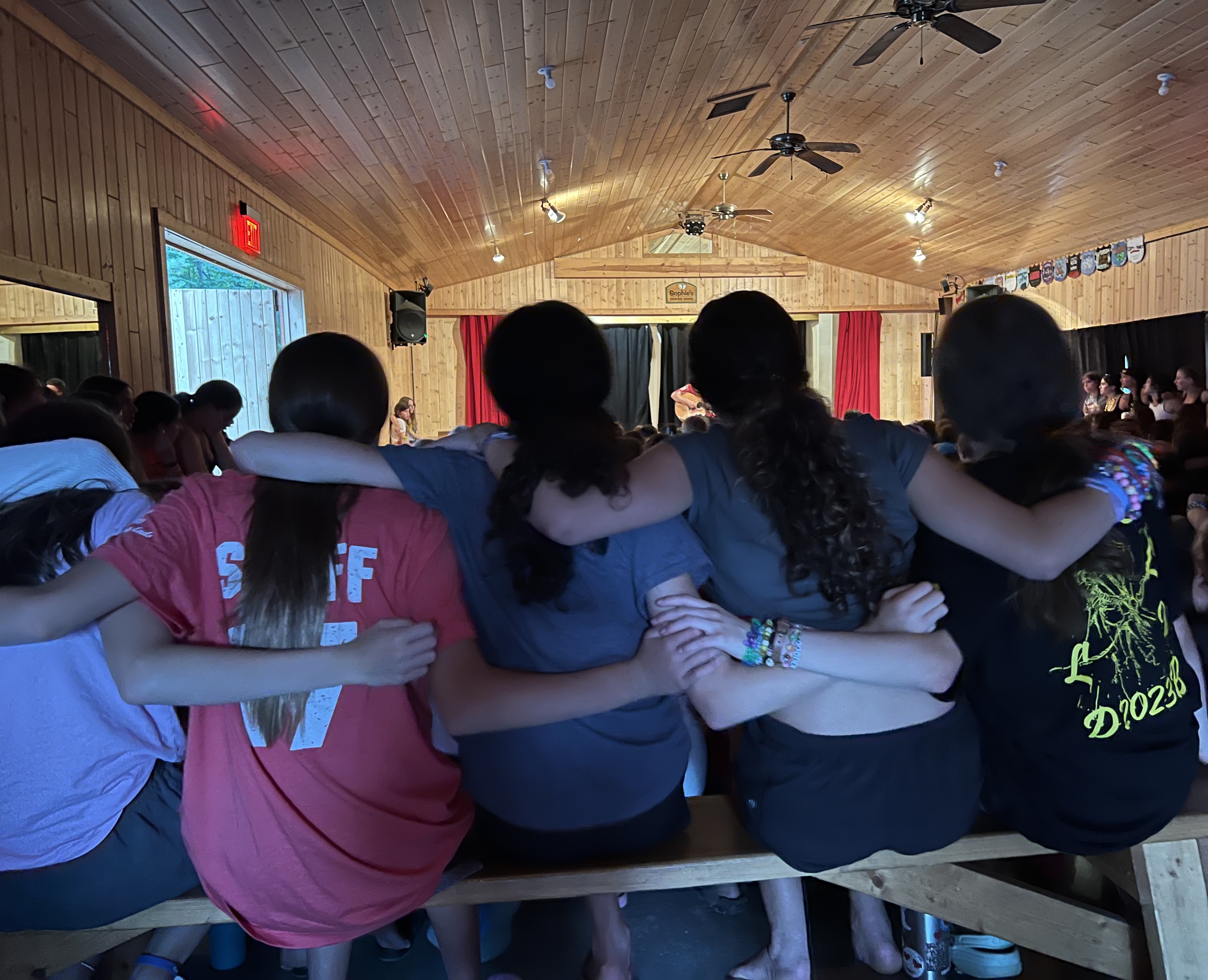 And then tonight, we had the Final Staff Show…it was fun! Our special guest counselors (here for the final ten days of camp), Marni, Ellie & Syd Goldy, MC’d the program, and they were excellent up there…naturals…it was as if they had been here all summer long! As for the show itself, the classics were performed and campers were highly entertained. We ended the show with the traditional Mister Rogers skit in which counselors poked fun at their campers for silly things that happened throughout the summer. I know that campers look forward to this each summer, and while I don’t totally understand all of the little skits, I love the energy with which the campers participated in the response part of the act (for those of you who are familiar, it’s the “Can you say…” part). Cliff, Lisa and I then led the camp in the always heart-string-tugging song- “Today Is.” As we sang, “Thursday bye bye,” there were many sad Chippies…some with tears streaming down their faces as they were reminded that the end of our summer is rapidly approaching. Tonight was mostly about laughter, fun and entertainment, but at the end, we always like to bring the tone down a notch- a little bit of time to reflect on our summer.
