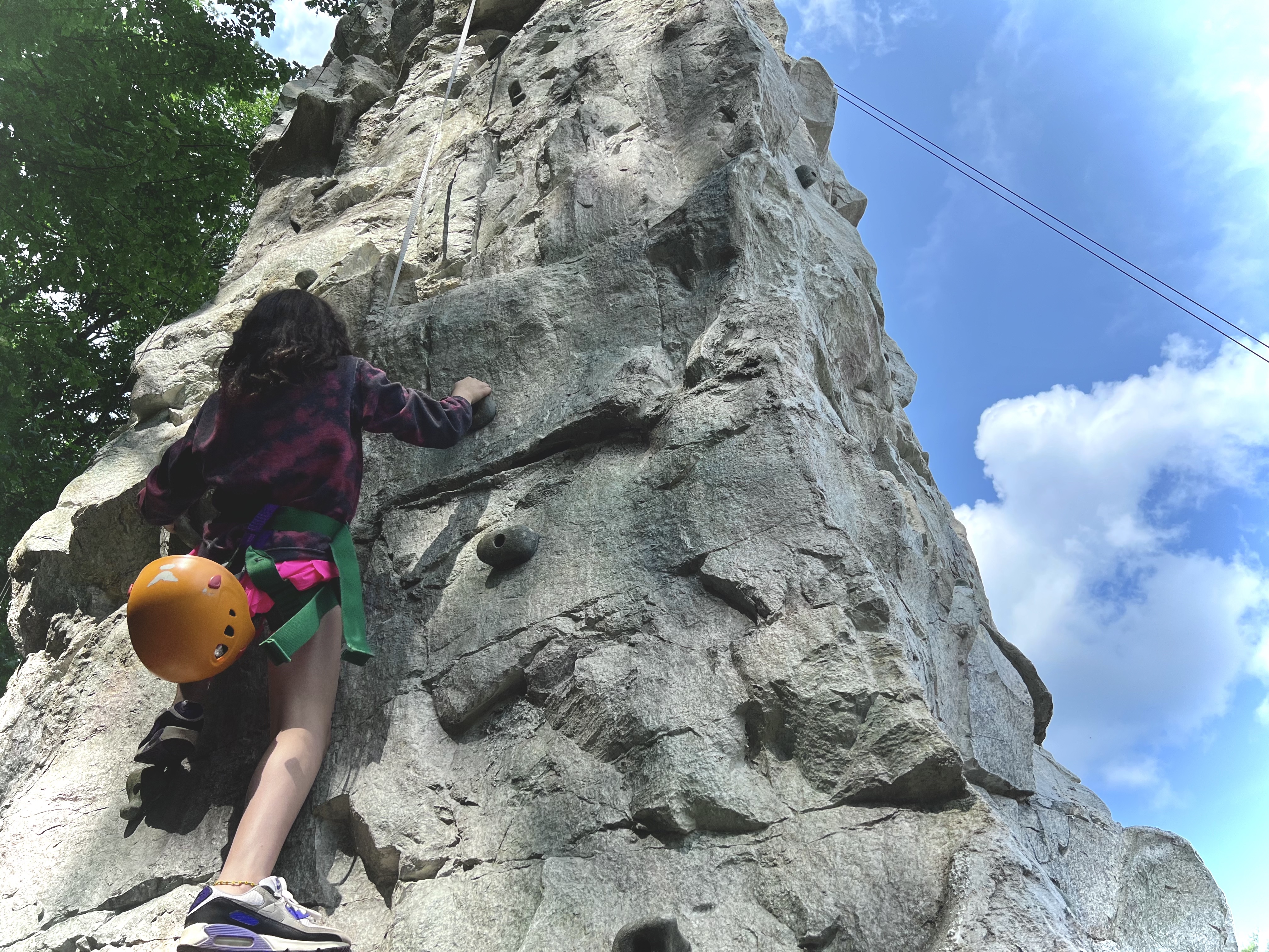 During second period, I walked through camp and was impressed with the level engagement…after nearly eight full weeks of camp, both campers & counselors were as excited to do activities as they were the first day of way back in June…each and every place I turned, Chippies were buzzing. At archery, Luke was excited to call me over to watch Elise M work towards her final gold before officially making it into the gold club. Her sister and friend, Renata A, were cheering her on, and clearly invested in this achievement for Elise! Next stop for me was trampball and the scene was like one out of a movie…campers were on the tramps giggling as they jumped, and in the background, there was a serious teatherball game with fans cheering…and beyond the teatherball court, the fairytale scene continued…Charlotte H was climbing the wall with two Lakeview campers, Samantha D & Julia P, helping her map out her route. It was beautiful…CRC activities at their best and Chippy campers having the time of their lives.