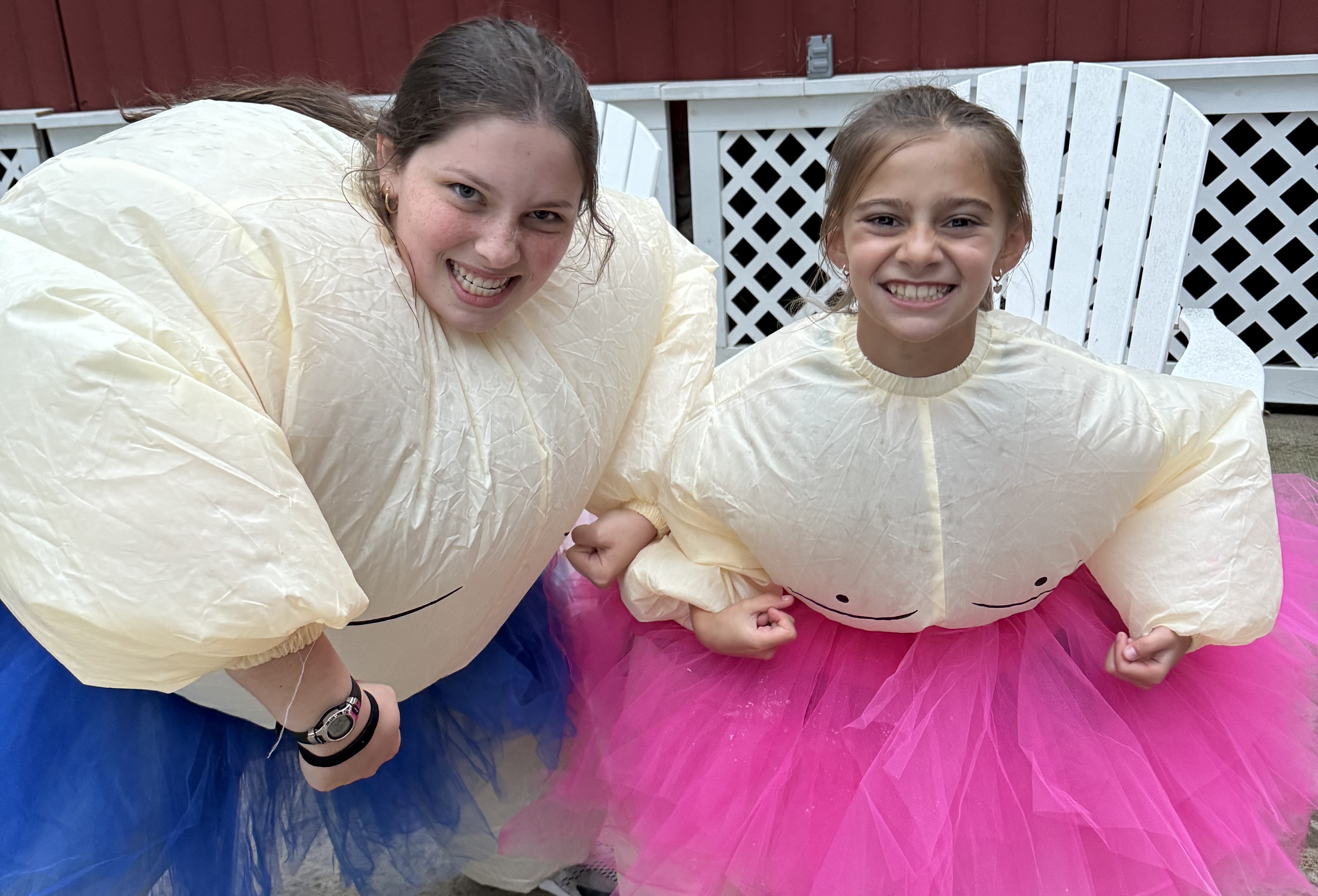 To finish off the day we had Big & Little Sister Night. There was certainly no shortage of excitement being shown and fun being had as campers roamed camp and participated in many different activities including ice cream eating, a trivia game and a 3-legged race. Each pair showed up with enthusiasm, a competitive spirit, and an impressive matching costume. Congrats to all big and little sister pairs, but especially Stella G and Avery “Chick Chick” J, who earned themselves a win AND a scoop of Cathy’s to celebrate! Shoutout to the CITs, who put a great deal of time and effort into planning and running the program. Their care for the experience of the campers shined through in their thoughtful Big & Little Sister pairs, in the organization of the activities, and in the enthusiasm they showed while implementing the program itself. It is because of them that tonight was such a success!!