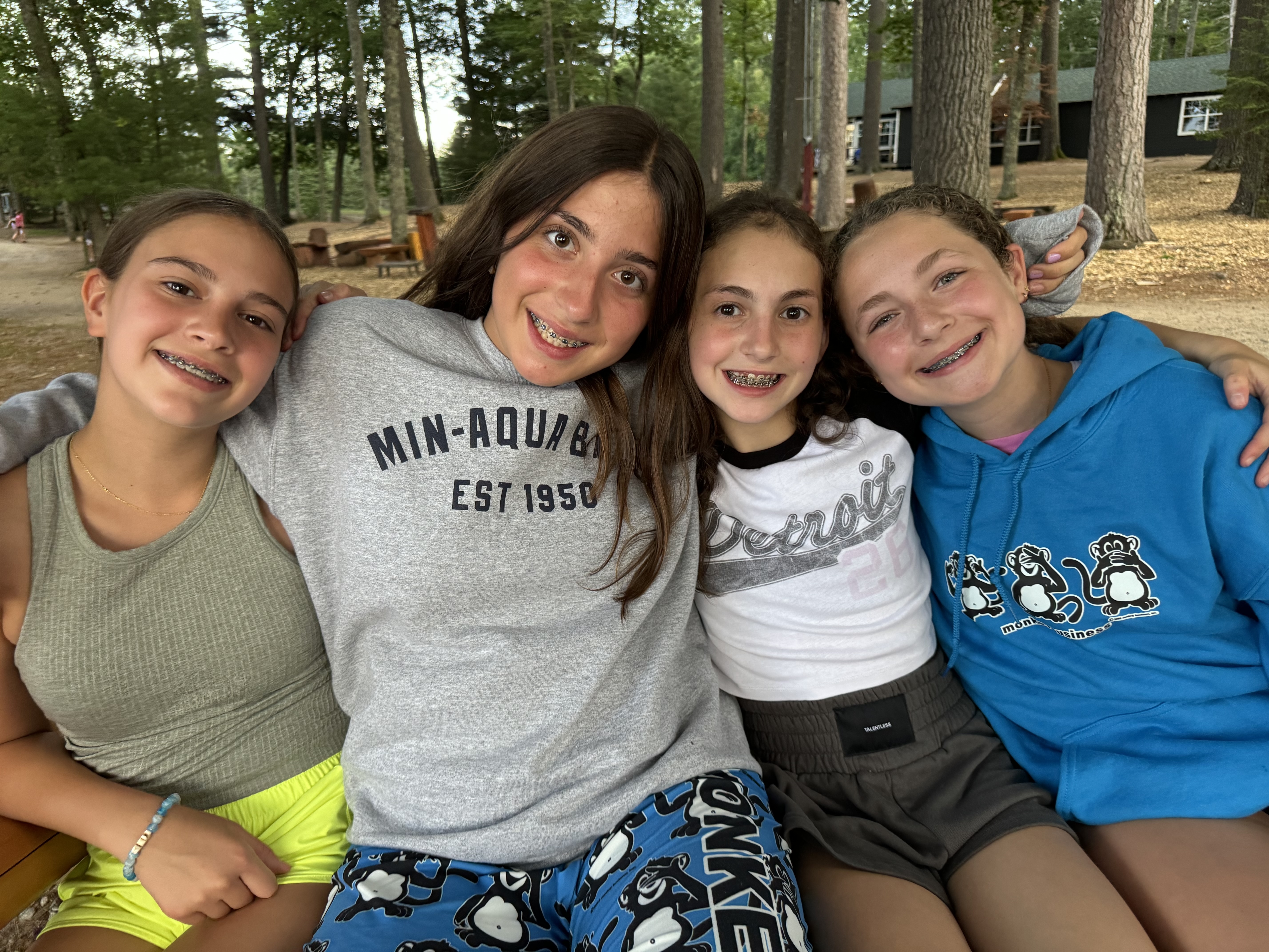 The buses pulled in at about 2:33pm and “We Welcome You To Chippewa” was sung loud and proud. As new campers and returning campers flooded off the buses, hugs were exchanged and screaming was heard. Once we announced cabins at the Center Fire Circle, campers and their counselors enjoyed some time together getting to know each other, unpacking and touring camp before dinner. Per our first night of camp tradition, we enjoyed spaghetti and meatballs for dinner and brownies for dessert…yum! At the end of dinner, there was a very special announcement from the Ski Directors…Hayden R is officially a Chippy Bat!!!