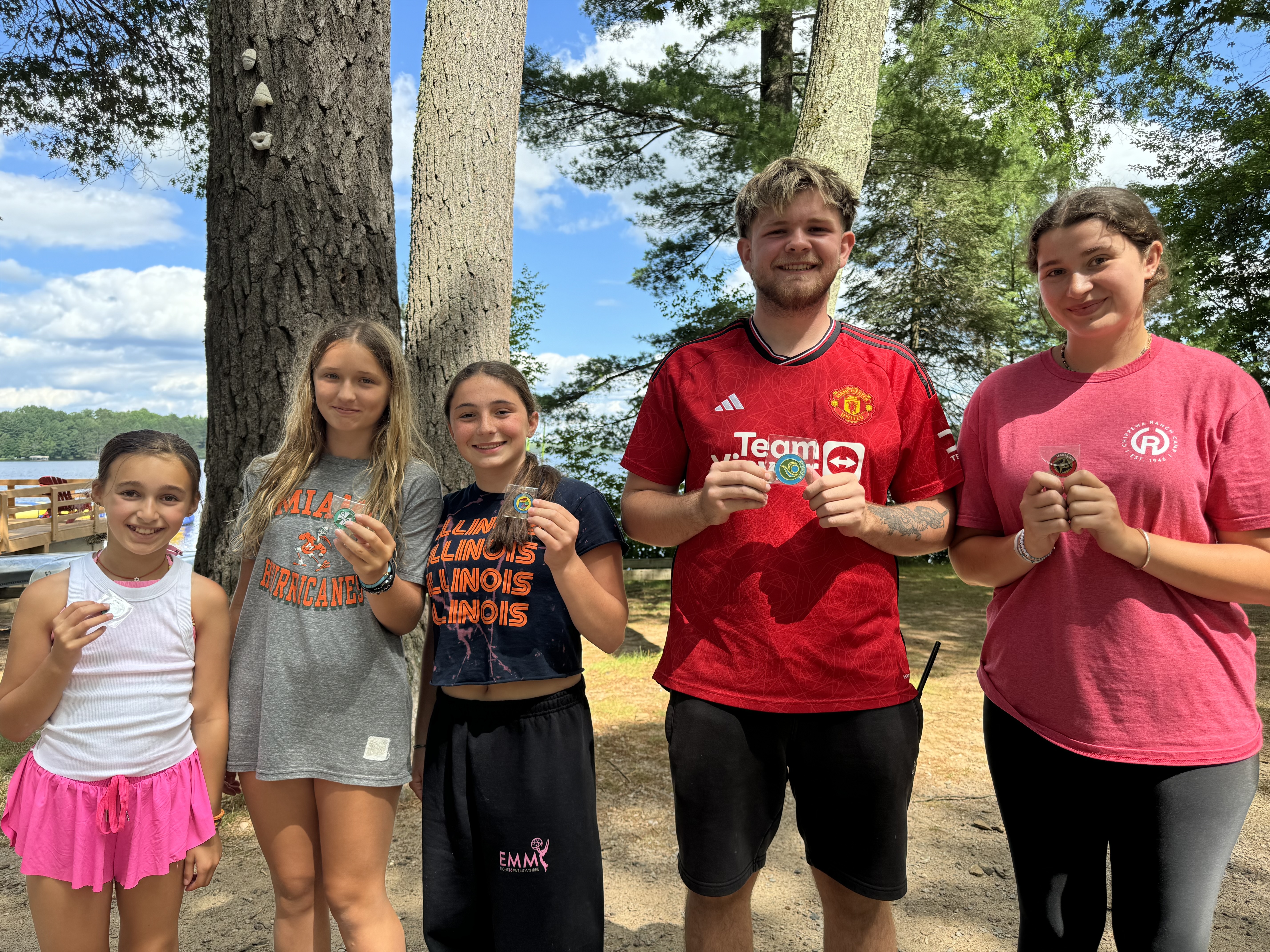 Next up in the afternoon we had a Coin Ceremony. There were five very well deserving coin recipients tonight- Ava F received the Catalyst Coin, Willow K received the Advocacy Coin, Naomi R received the Strength Coin, Charlotte Duffin received the Leadership Coin and Luke Bailey received the Kindness Coin. It was a fantastic ceremony in which these five individuals were honored for all that they give to our community. One of the best parts was when Charlie M heard that Ava F had earned a coin…her face lit up with excitement for her new friend and cabinmate…it was very sweet!