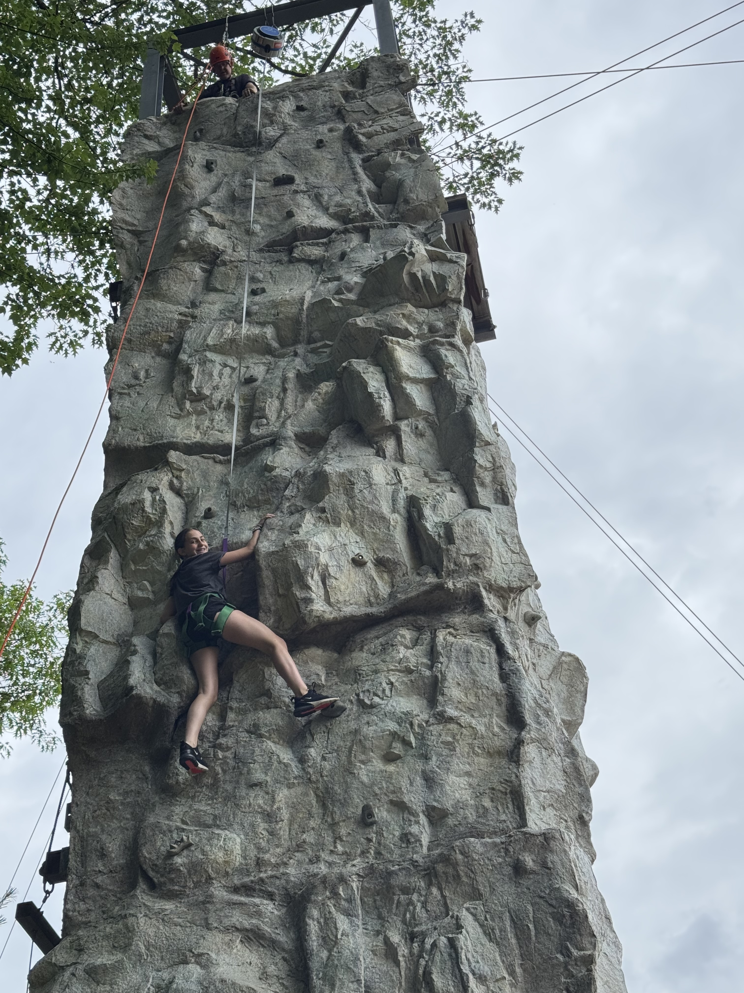-This morning I had the great honor of being the first Chippy to zoom down our brand new zipline. The real challenge was getting to the top of the wall…no small feat if I do say so myself. But once up there, I was taken aback by the beauty of CRC from fifty feet high. I’ve been on top of the wall before, but I’m not sure I’ve ever really taken the time to appreciate the birds eye view of Chippewa…it was amazing. Equally as amazing were the cheers that were coming at me from trampball. The campers there were chanting my name and encouraging me to be brave enough to take the plunge. It was incredibly sweet and they had quite the impact on my morning. Our campers are simply the best and this morning was just another demonstration of this.
