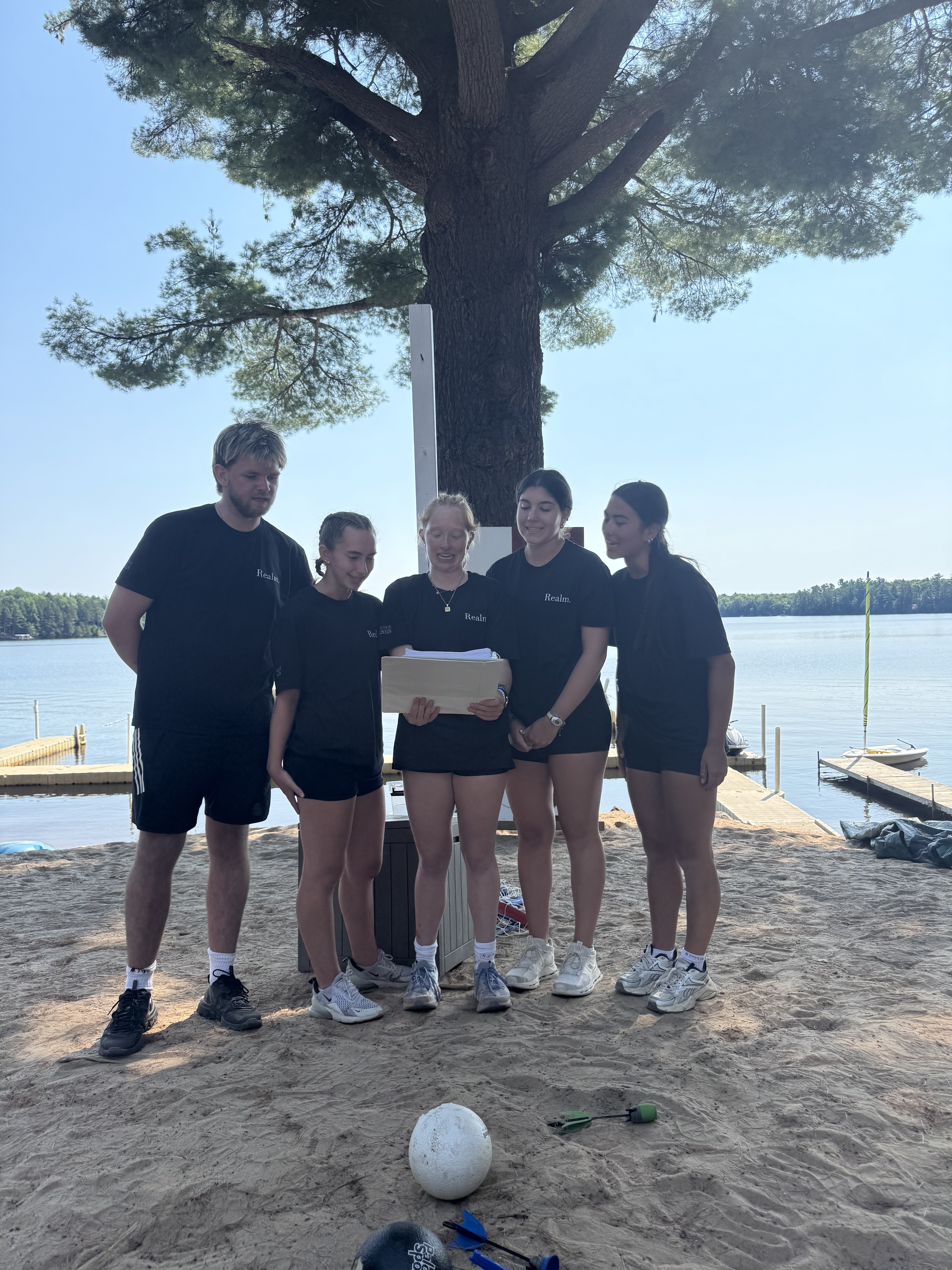 After breakfast and cabin clean-up, we headed to the waterfront for the Cornucopia where the Sachems strategically raced to gather supplies for their teams. The entire camp was cheering for these leaders- the energy to start the day was outstanding! Following the Cornucopia, teams headed to their castles to strategize before reporting for duty at their designated posts. From the Top of the Hill, we could see the Tan Team doing a dance all together to prepare in a fun and silly way for the intense day ahead…a reminder that while Realm is life, Realm is also a game that is meant to be enjoyed.