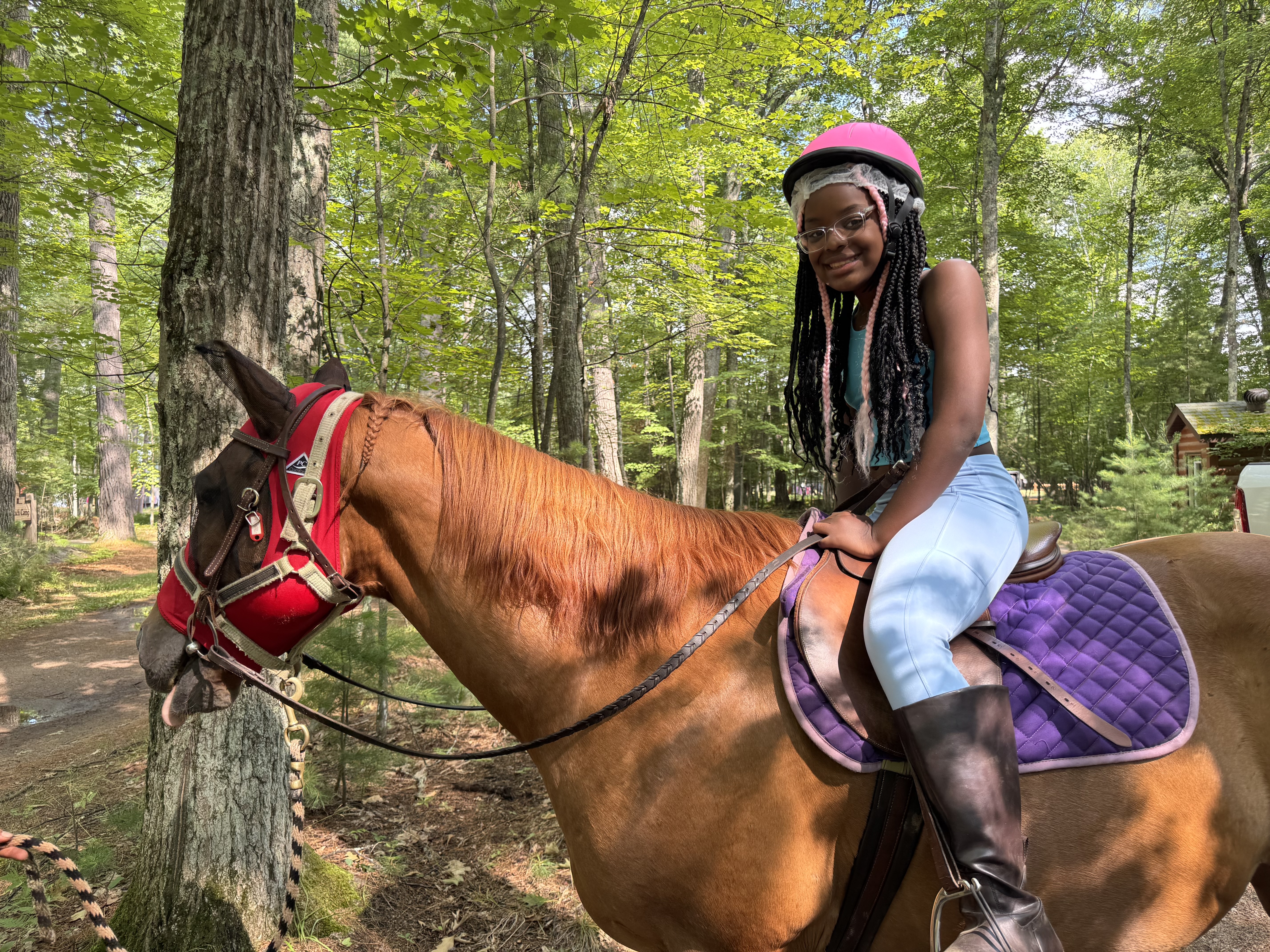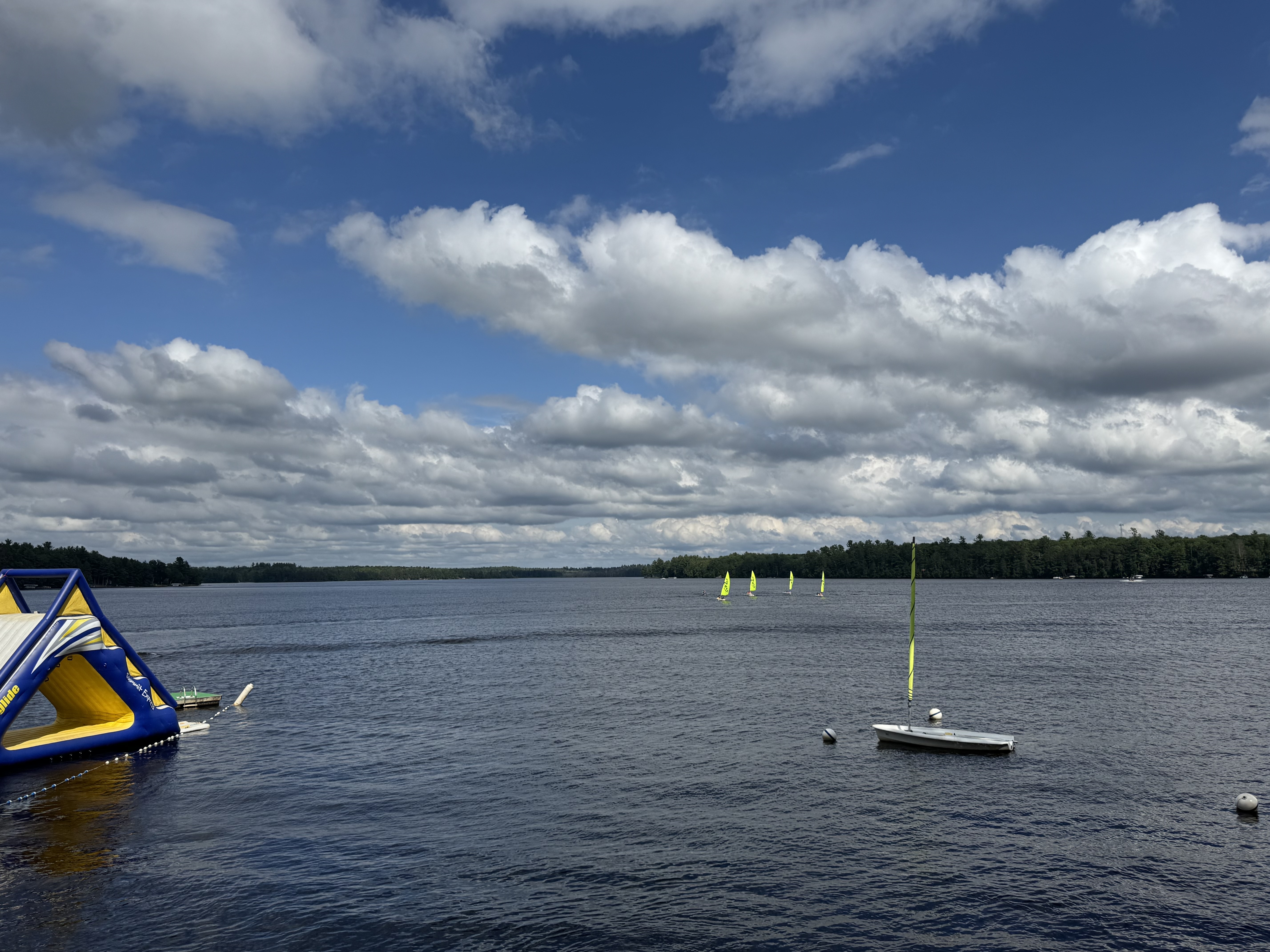 -I had a couple of personal highlights beginning with witnessing Tyler T climbing the obstacle course side of the wall. She was excitedly climbing while her friends cheered her on. And at riding, I had the opportunity to see Riley H, Poppy M and Eden M on a trail ride. At pottery, Hazel N was very excited to show off her amazing pot that she created on the wheel. I am in awe of the pottery skills being learned in the pottery studio this summer…there is creativity and talent flowing out of that space! And then following afternoon snack, I decided to head to the waterfront and sit on the Daisy. I think I might make this a daily ritual because it was a very cool couple of minutes. I had the opportunity to observe the waterfront in all of its glory. Swimmers were having a blast on the lake- the sounds of glee coming from the swim area were heart warming. And at sailing, I watched as Emery Sonsino helped the campers understand today’s wind pattern. As campers prepared their sailboats to head out onto the water, Emery opted to join Gemma F, Cora P and Alexa G…they were today’s big winners as they got to learn from Emery while she was on their boat!