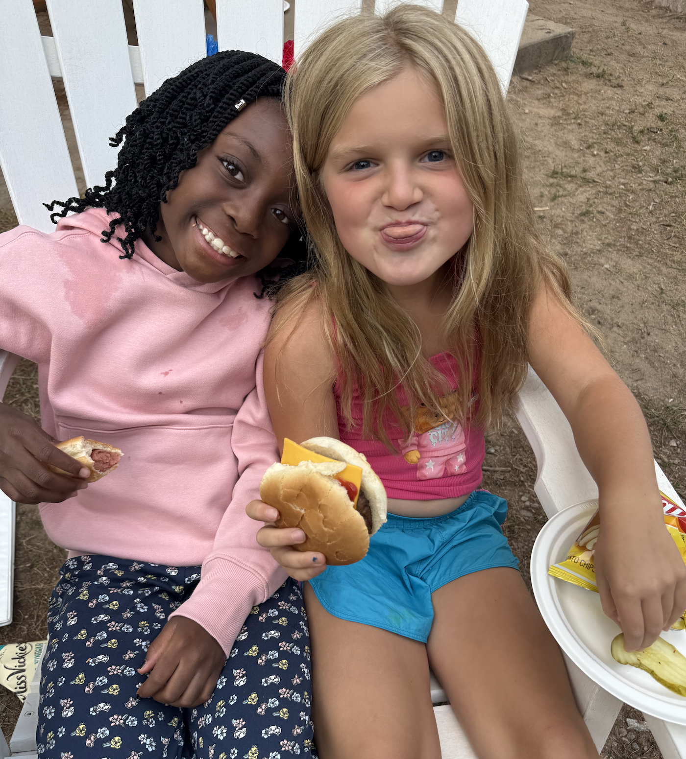 And finally, the day ended with a delicious BBQ dinner on the waterfront. There is truly nothing better than enjoying a hotdog with friends while reminiscing about an amazing day and looking out at the lake. As I sat on the beach with a bunch of campers and staff members, I was reminded of the magic that happens when we can stop and just appreciate being together. I watched Kenzie C and Poppy D create dances on the fly, Juliet G and Zoey G share a chair as they ate and laughed together, and a group of campers across age groups circle up as they told stories of the summer. It was a moment of nothing special and so much special all at the same time. That’s the best part of camp, if you ask me. And then, after everyone finished their pineapple upside down cake, Wicked was announced as the winner, and they celebrated with a well-deserved trip to Cathy’s!