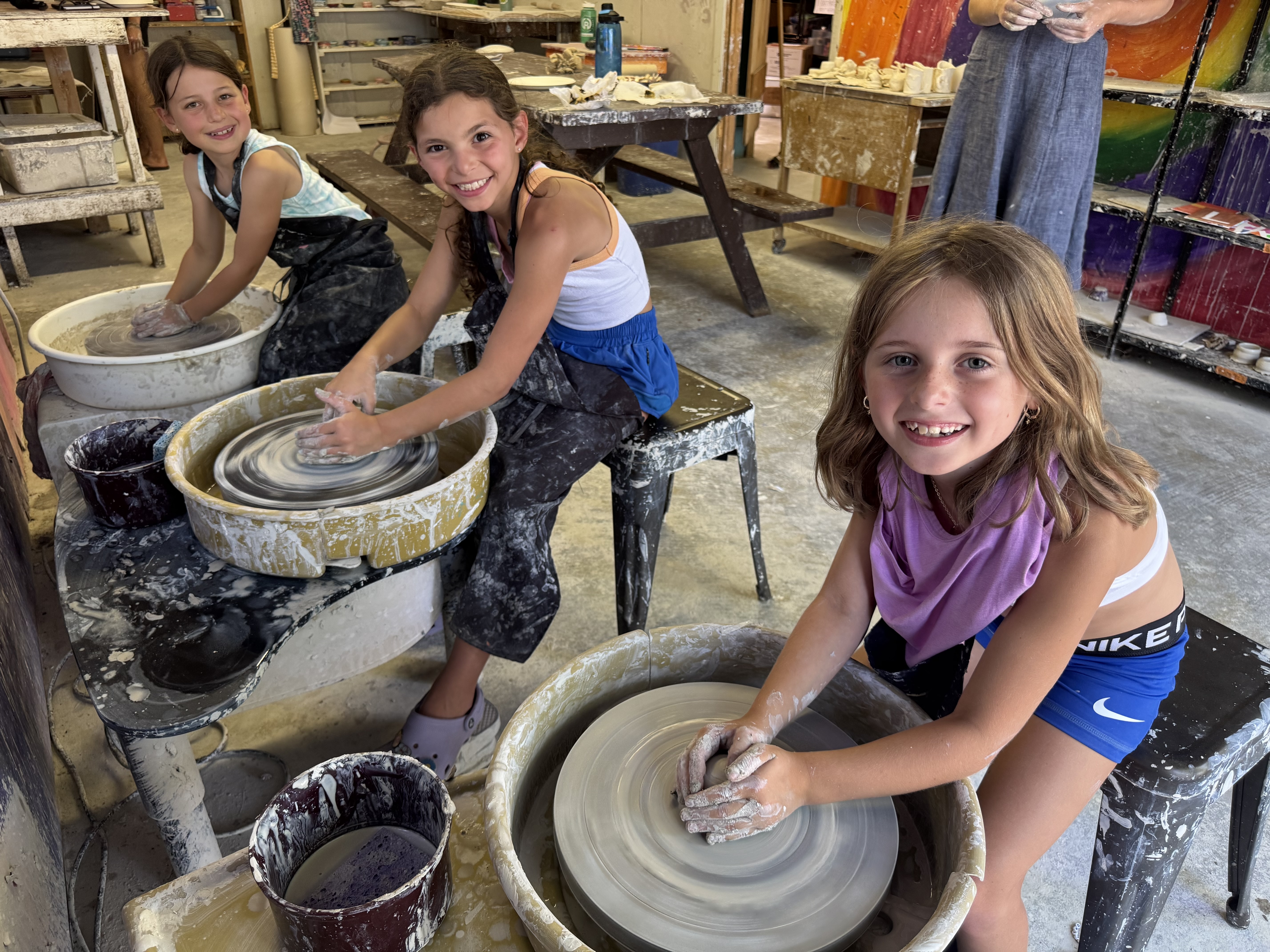-We had a very lovely first day of B Day activities! Down at fishing, the fish weren’t biting but it was still a good time. Campers learned how to rip worms, bait the hook and cast their lines. And at pottery, Josie W was super excited to try to wheel for the first time…she is a natural! At the stables, campers were happy to meet the horses, feed them, brush them and mentally prepare for their first ride. In cooking, they were making delicious brookies…yum! At sailing Julia M, Lily R, Lexi K, Brooke R & Billie S had a great adventure of capsizing and recovering out on Dam Lake. They got back to shore eager to share the their story. Basically everywhere I went, campers were engaged and thrilled to be back in action!