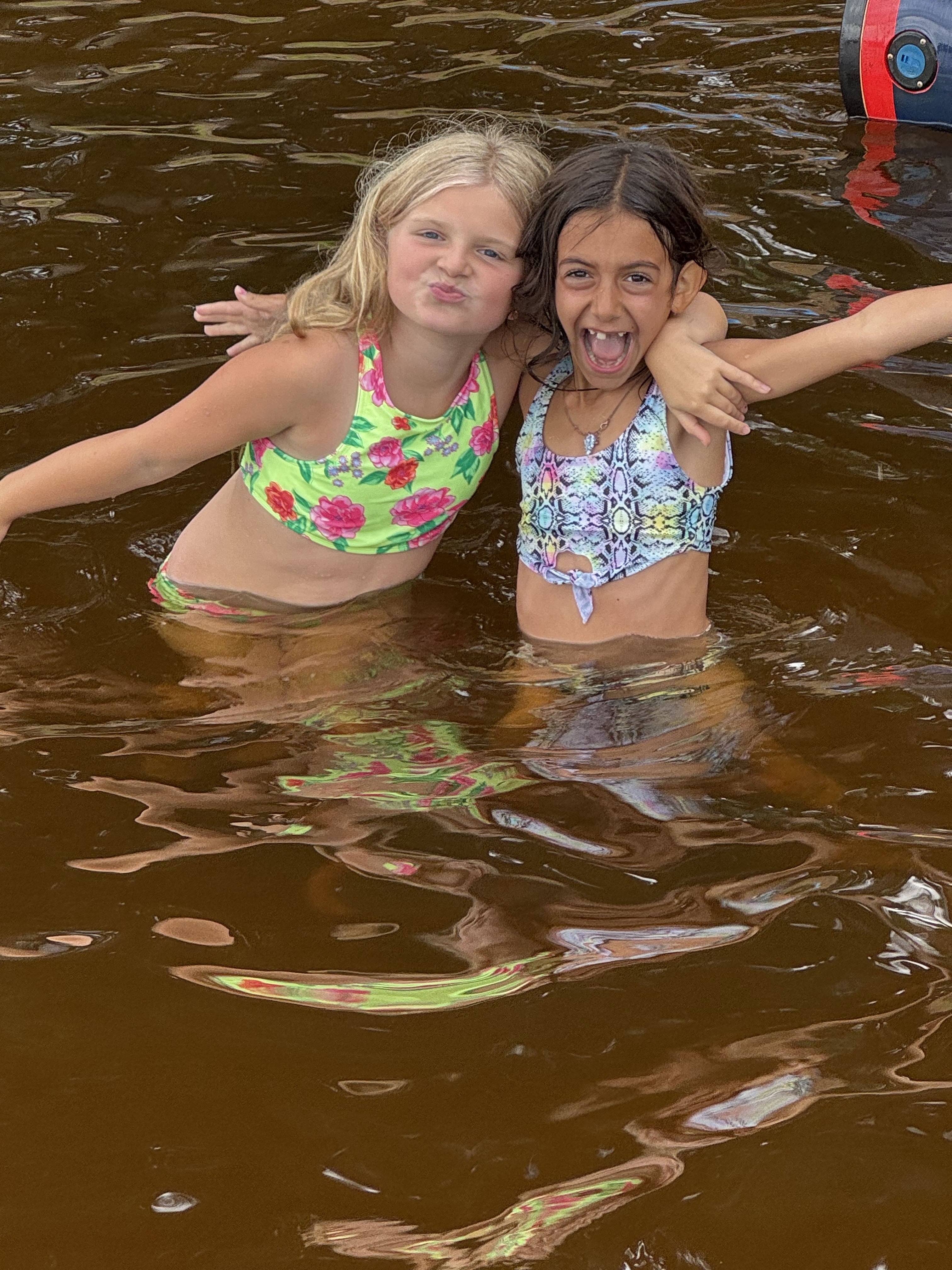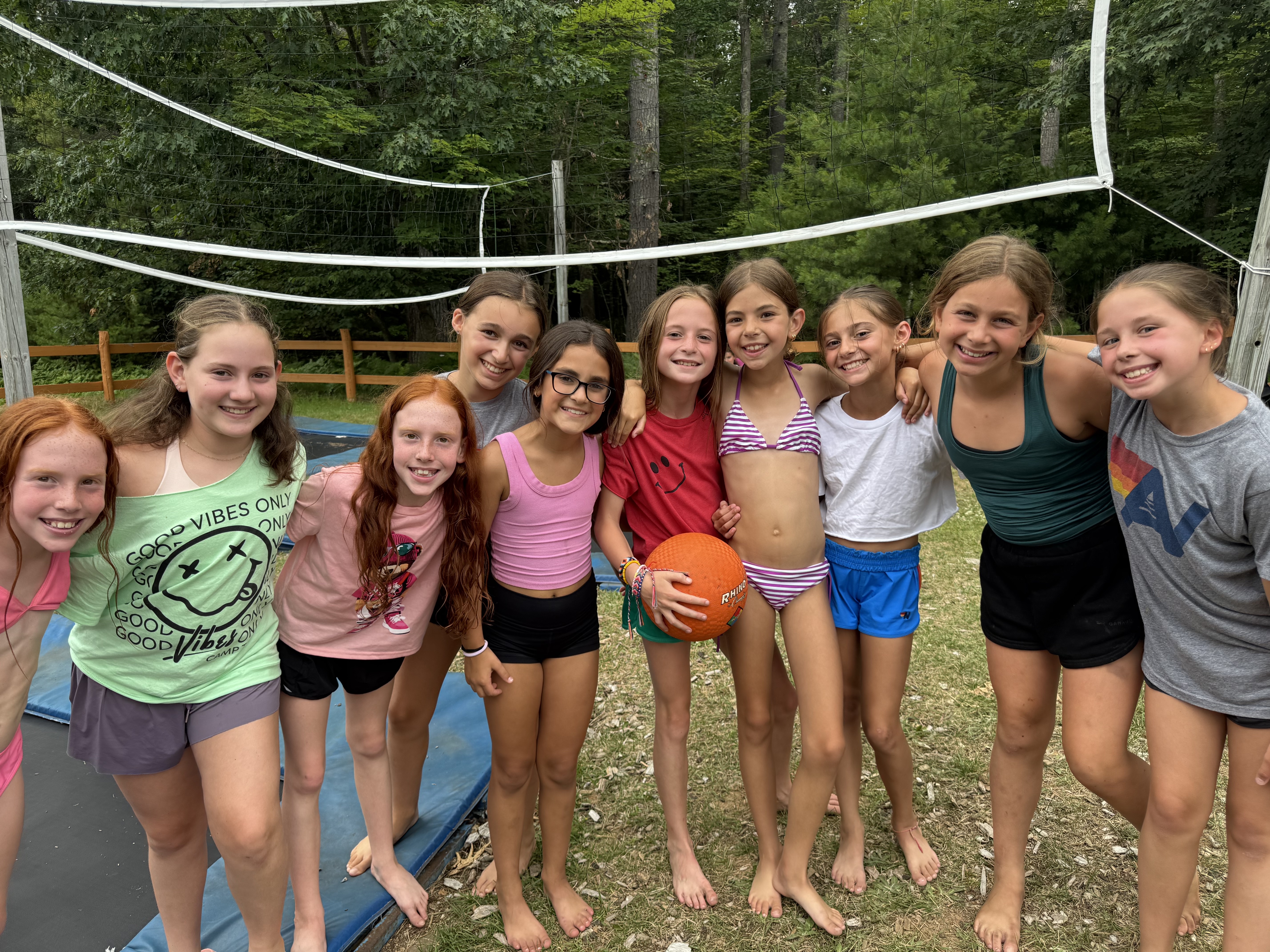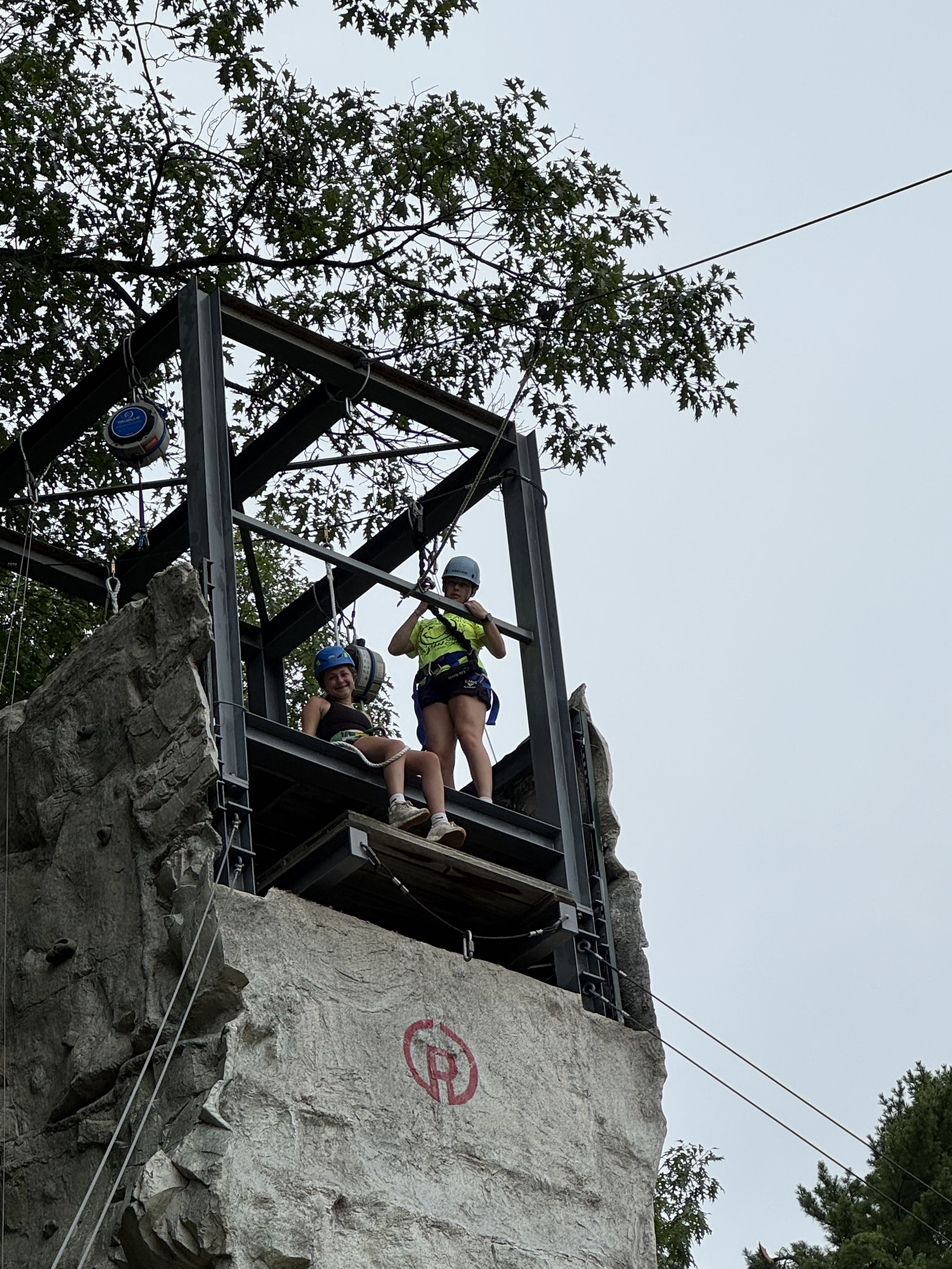 -B-Day activities were rocking all day long! At the climbing wall, I had the good fortune to watch Jilly C zoom excitedly down the zipline! And in swimming, the campers of Rafter^X were practicing their log rolling with help from Lakeview campers Laney K and Alexa R. At riding, Mackenzie A completed her highest ever jump…amazing! Probably my favorite part of the day was when I was walking by trampball in between periods. The tri-cabin girls were patiently waiting for the instructor to arrive (there were still four minutes before the activity period began). They asked if I could watch them while they waited for the instructor. I was so happy that they wanted to jump that I agreed immediately. What happened next though was the best part…they began playing a very intense game. The rules were known by all, they each wanted to win but they were playing fairly and with a wonderful competitive spirit. I loved it!