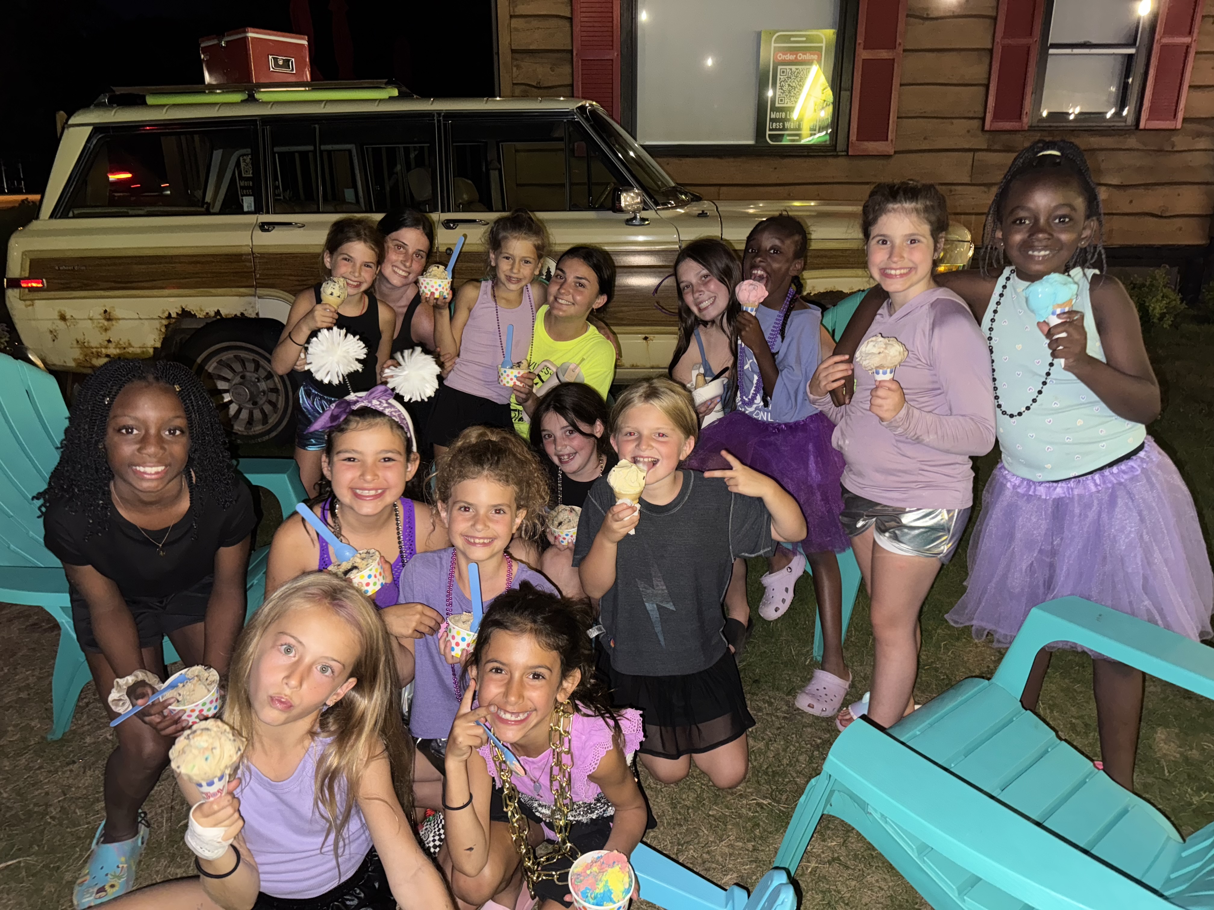 -Tonight was Lip Sync…the evening program so many look forward to. During Rest Period, cabins were practicing intensely- putting the final touches on their performances. I stopped by the South Field and got a preview of Wagon Ridge’s…it was soooo cute! And after BBQ tonight, campers excitedly put on their costumes and got amped for their moment on stage. I must say that each and every cabin was impressive. There were many different styles and genres but each cabin really put it all out there on Sophie’s Center Stage. Trailrider’s chose “From Now On” and it was outstanding. I have been seeing them practice outside their cabin basically since Visiting Weekend and it paid off! The song is a tear jerker to begin with, but the pure elation that they displayed up on that stage made it even more so. Our guest judges (the 2024 First Year SCs) were overcome with emotion by this performance and I don’t blame them…it was a display of unity and love…TR 2025 is feeling the impact of #TheRanch2025! Another wonderful part of the night was Lakeview…up there on that stage for the final time as campers, they did not one or two but three lip syncs…one was new and the other two were from previous Lip Syncs. They danced their hearts out, and had the time of their lives! In the end Rafter^X and Trailriders won, but as is tradition, Lakeview got to join in their trip to Cathy’s. I had the good fortune of tagging along for this ice cream trip and it was fun & adorable to spend time with our oldest two age groups along with the youngest age group celebrating!